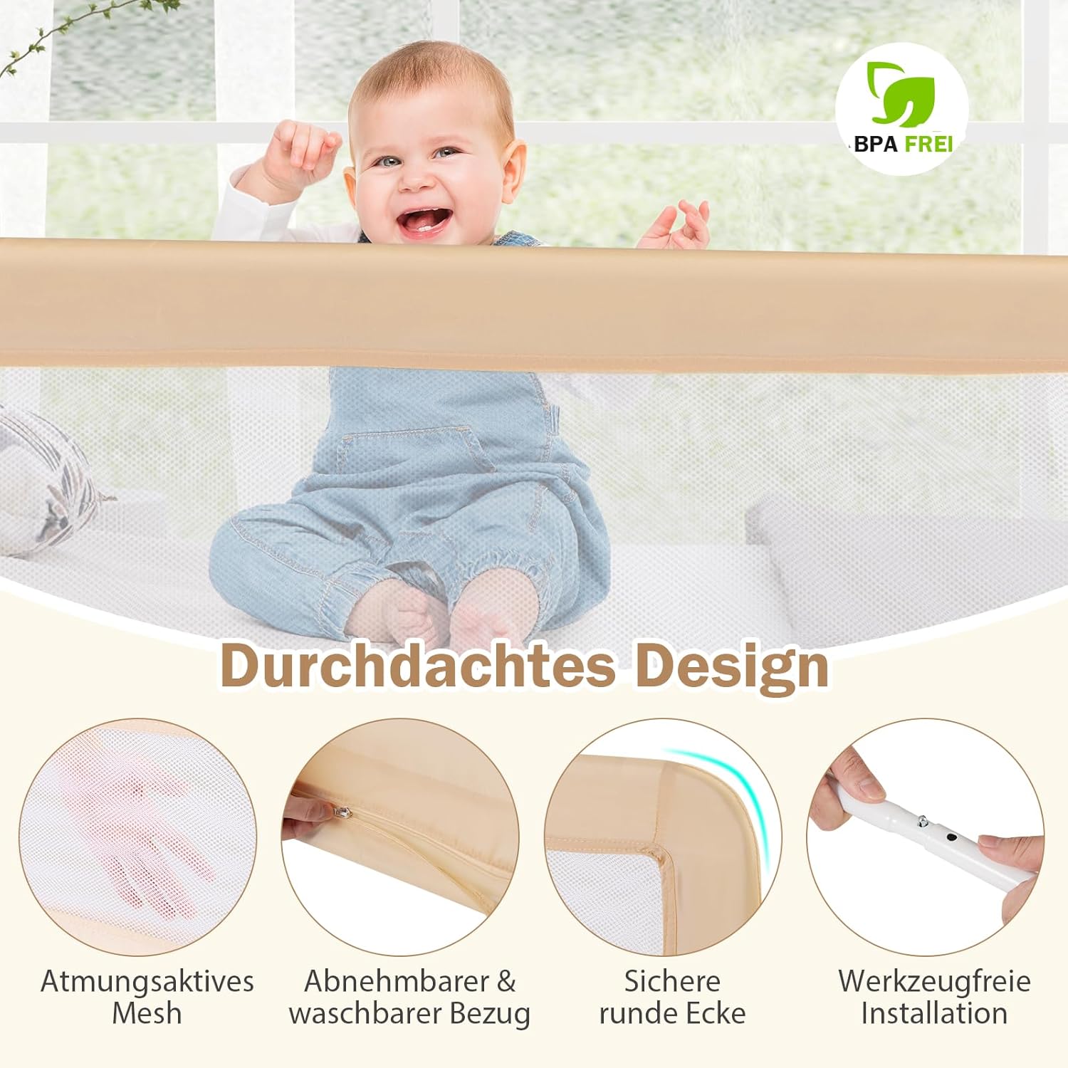 - đŁăSichere & angenehme SchlafenszeităMit einer LĂ€nge von 180 cm und einer Höhe von 56 cm bietet dieses Bettgitter Babys einen hervorragenden Schutz beim Schlafen und ermöglicht Eltern eine ruhige Schlafenszeit.