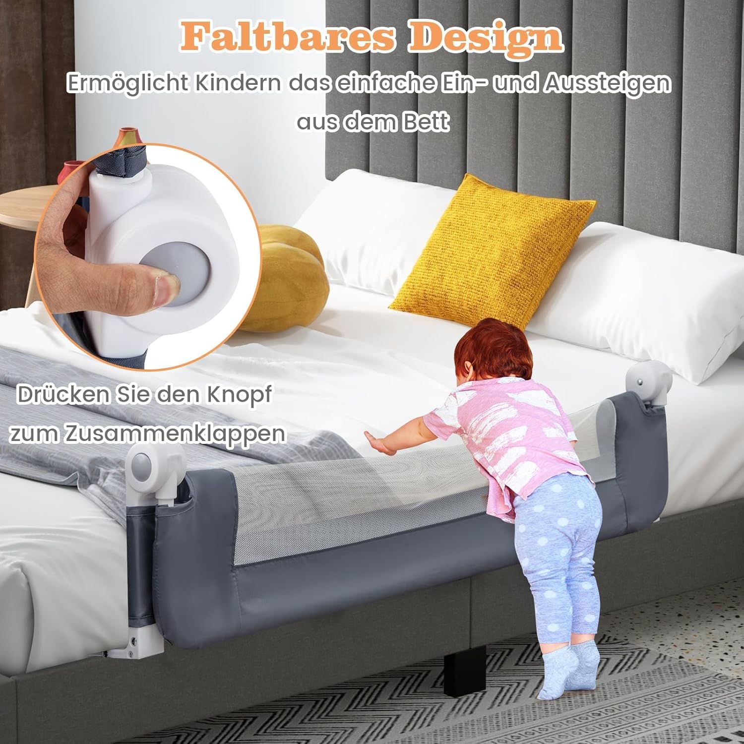 - 【Schützen Sie Ihr Baby】 Mit einer Länge von 105/120/150 cm garantiert dieses Bettgitter Ihrem Kind eine herausragende Sicherheit. Wenn Ihr Kind nachts allein schläft, bietet ihm dieses Gitter den besten Schutz und eine sichere Umgebung. Dank dieses Schutzgitters müssen Sie sich keine Sorgen machen, dass Ihr Baby aus dem Bett fallen könnte.