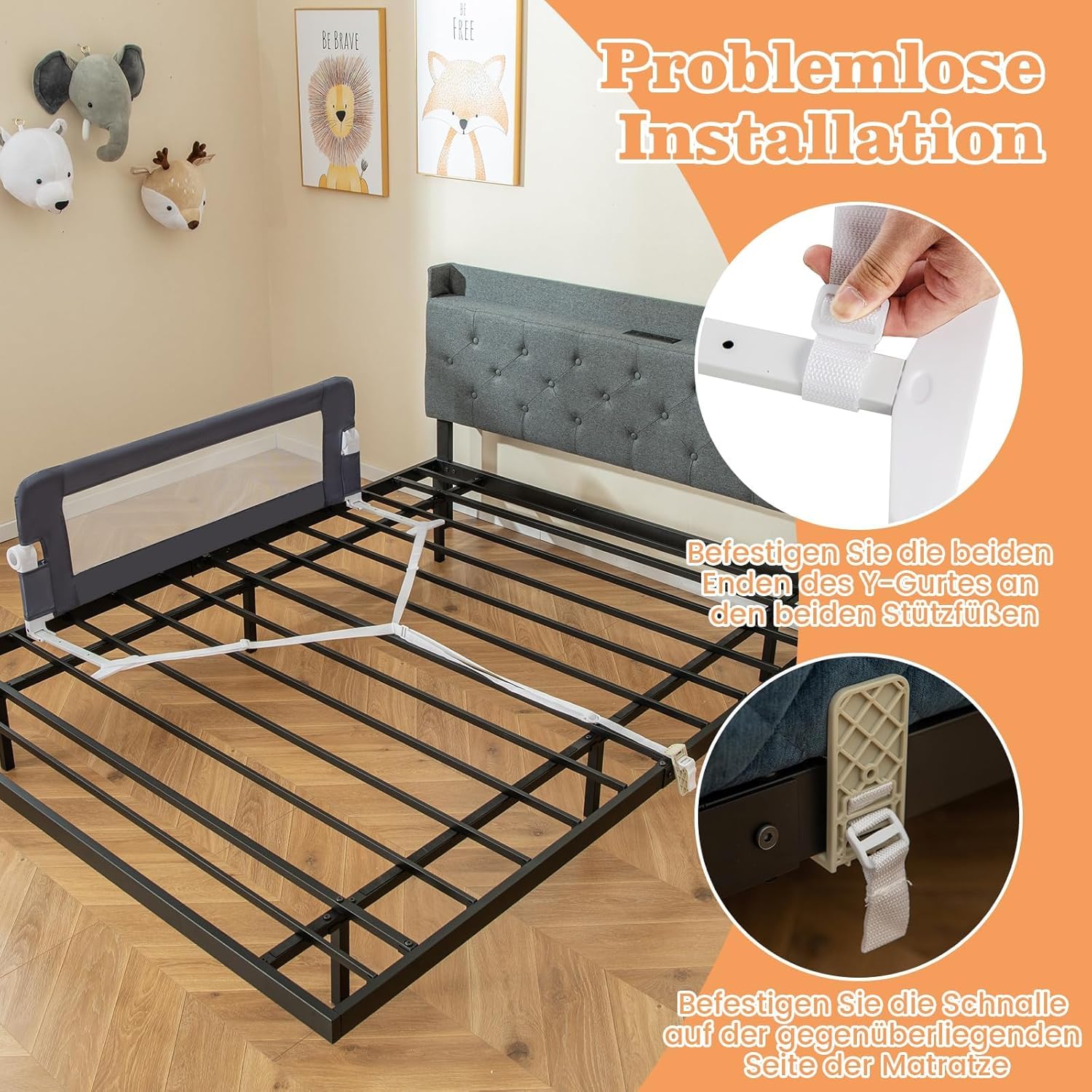 - 【Detailorientiertes Design】 Unser Bettgitter weist eine glatte Oberfläche und vollkommen abgerundete Ecken auf, um die Haut Ihres Kindes vor Verletzungen zu schützen. Das Meshgewebe ermöglicht zudem eine gute Luftzirkulation und hilft Ihnen, Ihr Baby jederzeit im Auge zu behalten und seine Bewegungen zu beobachten. Zudem lässt sich das Schutzgitter leicht auseinanderbauen und reinigen.