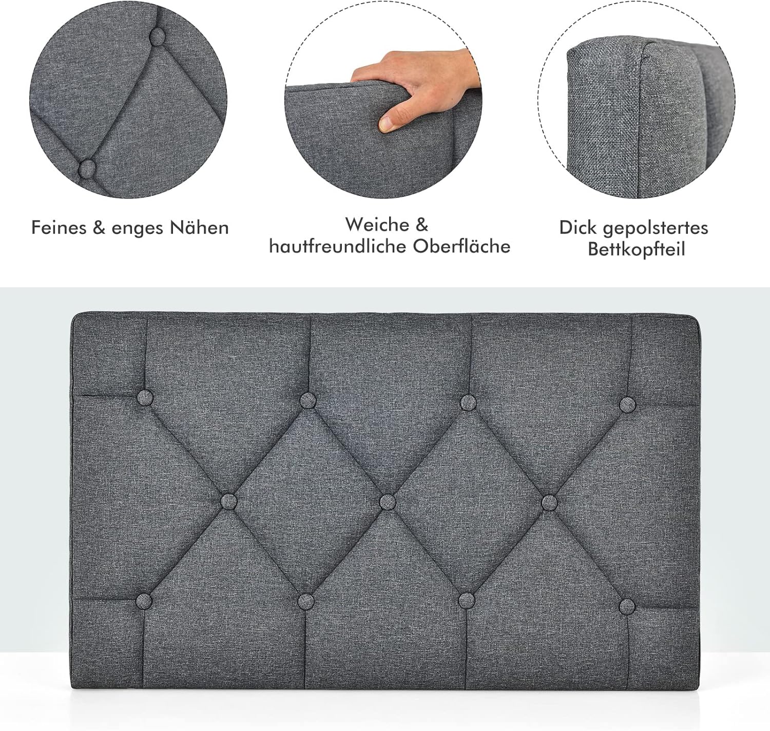 - 【Stilvolles Kopfteil mit Knöpfen】Die schlanken Linien und das elegante Erscheinungsbild verleihen diesem Kopfteil einen schicken und dennoch modernen Stil, der Ihrem vorhandenen Bettrahmen ein raffiniertes Gefühl verleiht und Ihren grossartigen