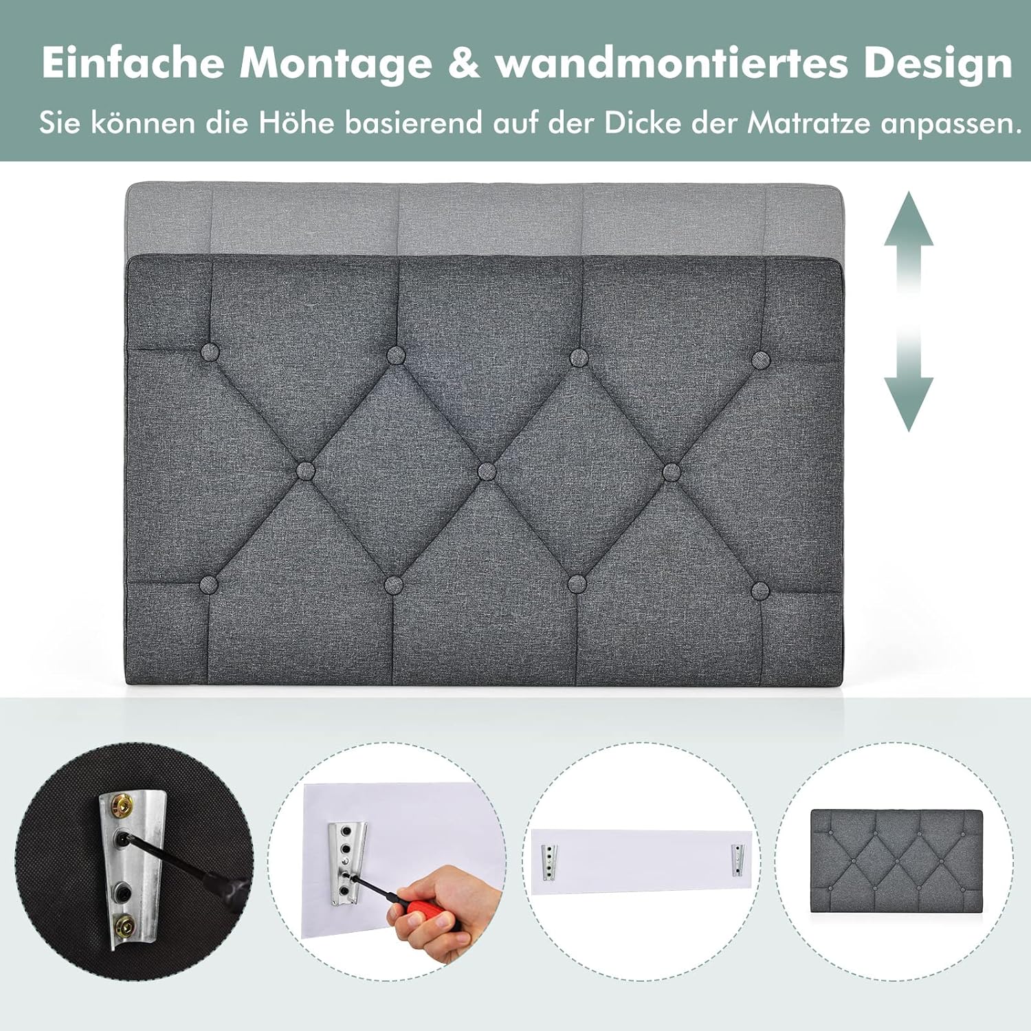- 【Problemloses Wandmontage-Design】Die detaillierte Anleitung und die notwendige Befestigungsvorrichtung ermöglichen es Ihnen, das Kopfteil ganz einfach an der Wand zu befestigen. Darüber hinaus erleichtern die vorgebohrten Löcher die Anpassung