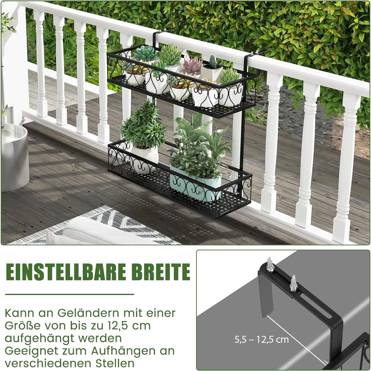 • 【Zwei verstellbare Haken】 Um an verschiedene Geländer zu passen, verfügt der Pflanzenbehälter über 2 verstellbare Haken, die eine individuelle Breite von 5,5 cm bis 12,5 cm ermöglichen und nur eine einfache Bedienung erfordern. Ausserdem