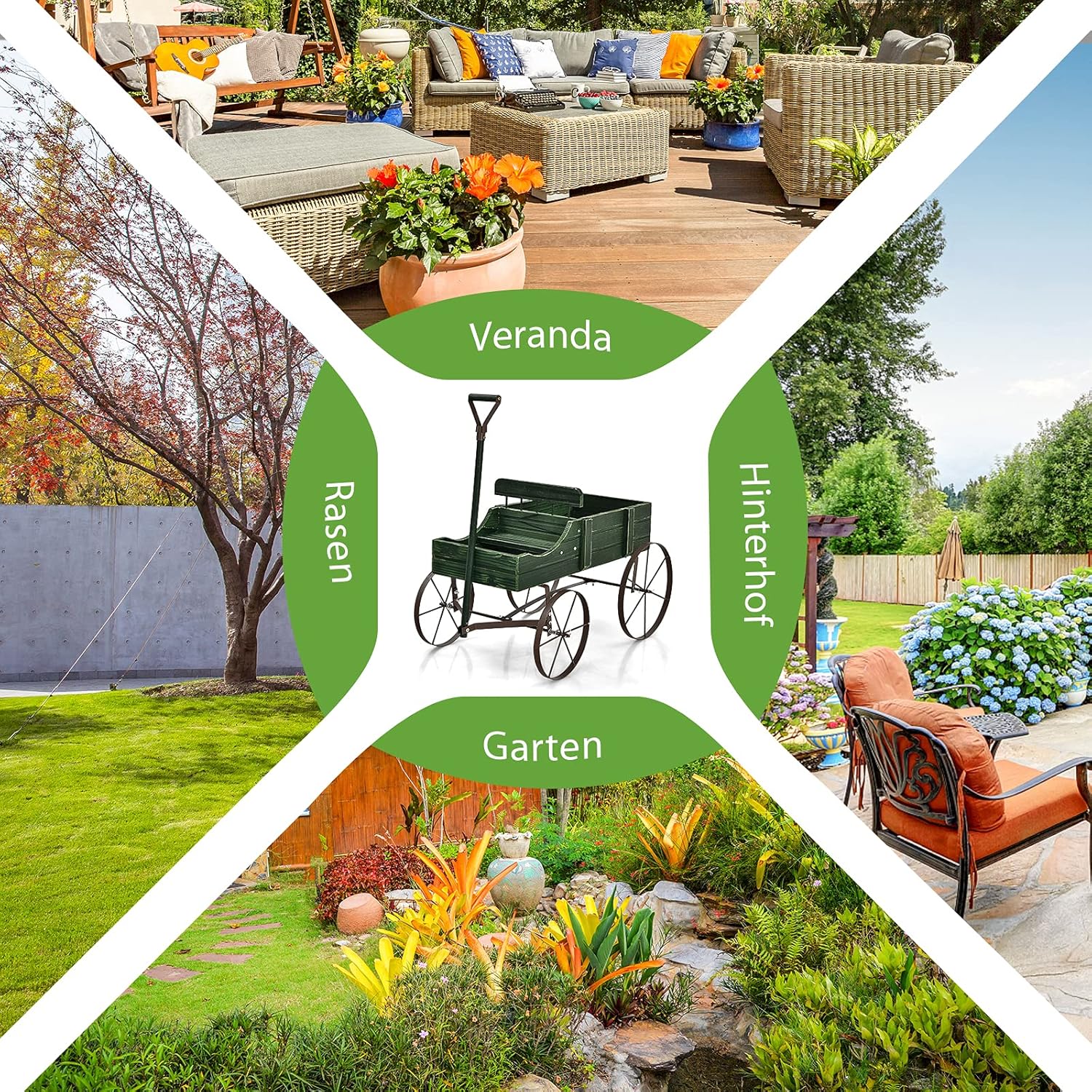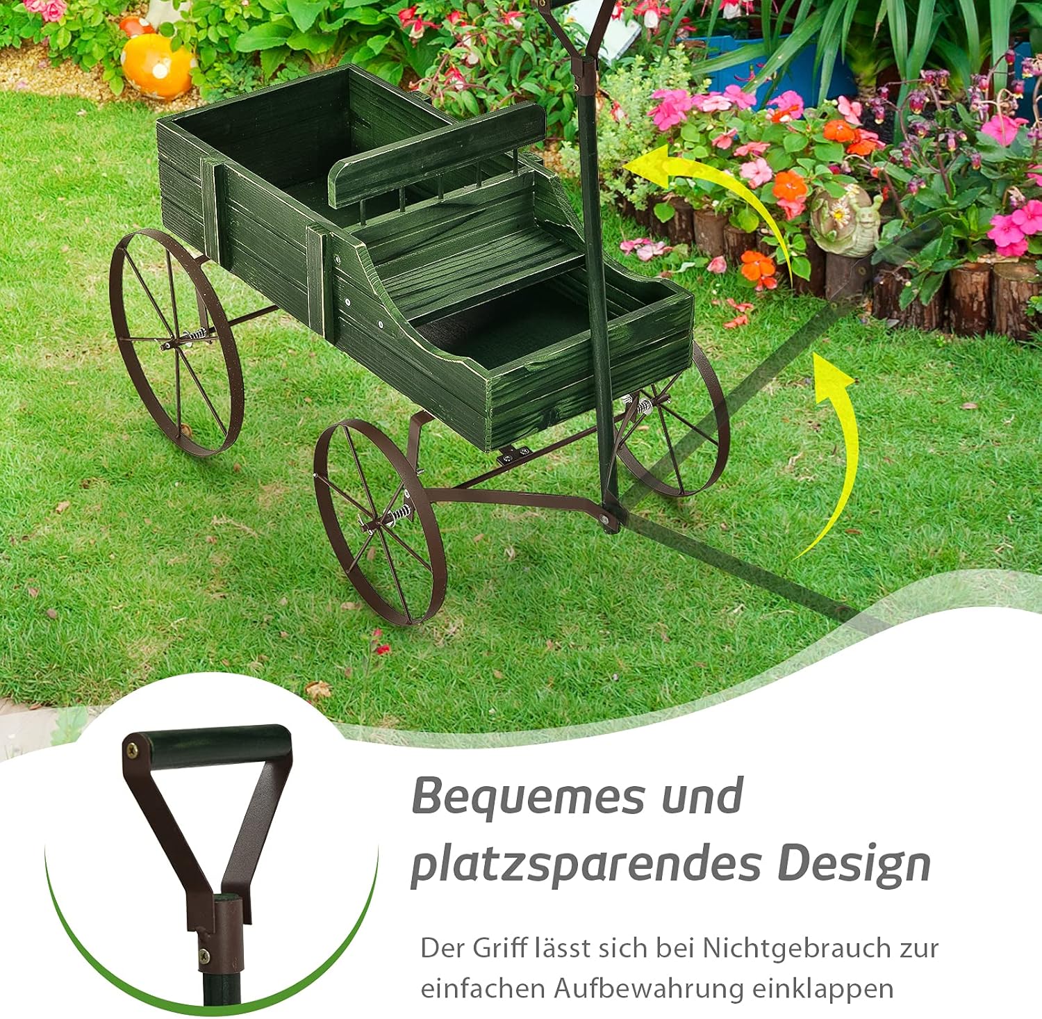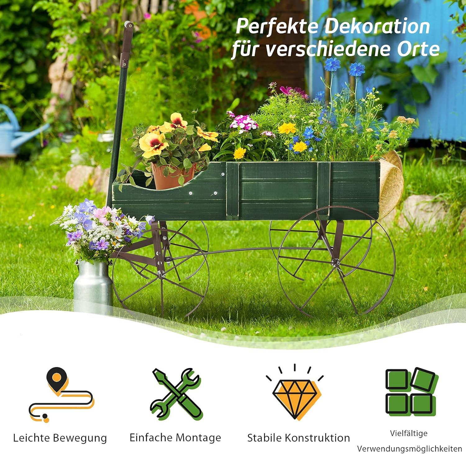 - 🌼【Dekorativ für den Aussenbereich 】Durch seinen rustikalen Stil eignet sich der Pflanzwagen für jeden erdenklichen Aussenbereich und ist dort ein dekoratives Highlight. Mit ihm haben Pflanzen im Garten oder auf der Terrasse einen Platz zum Wachsen.