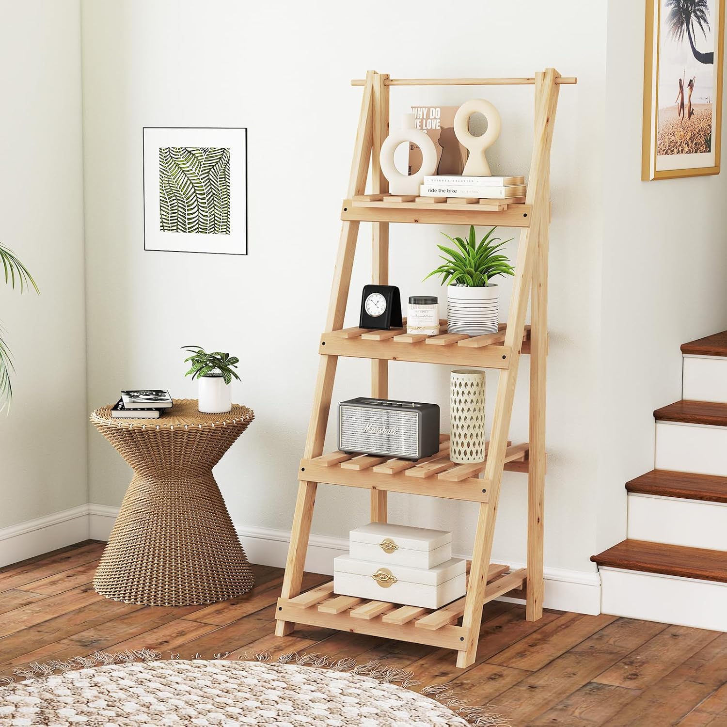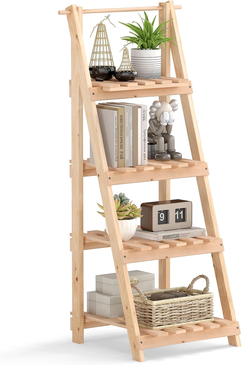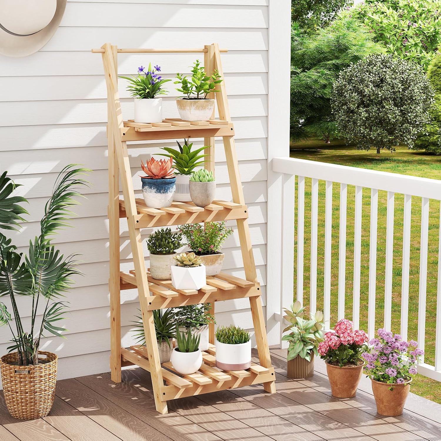 - 【4-stufiges Leiter-Design】 Dieser hölzerne Pflanzenständer verfügt über 4 Stufen in Leiterform, so dass die Pflanzen auf jeder Stufe das Sonnenlicht effizient aufnehmen und nach oben wachsen können. Ausserdem erhöht die stabile dreieckige