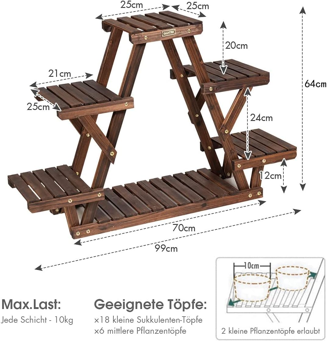 • 【Stabile dreieckige Form】 Der Rahmen des Regals hat eine dreieckige Form, die die Gesamtstabilität gewährleistet. Zudem werden durch die offene Struktur eine gute Drainage und Sonneneinstrahlung gewährleistet.