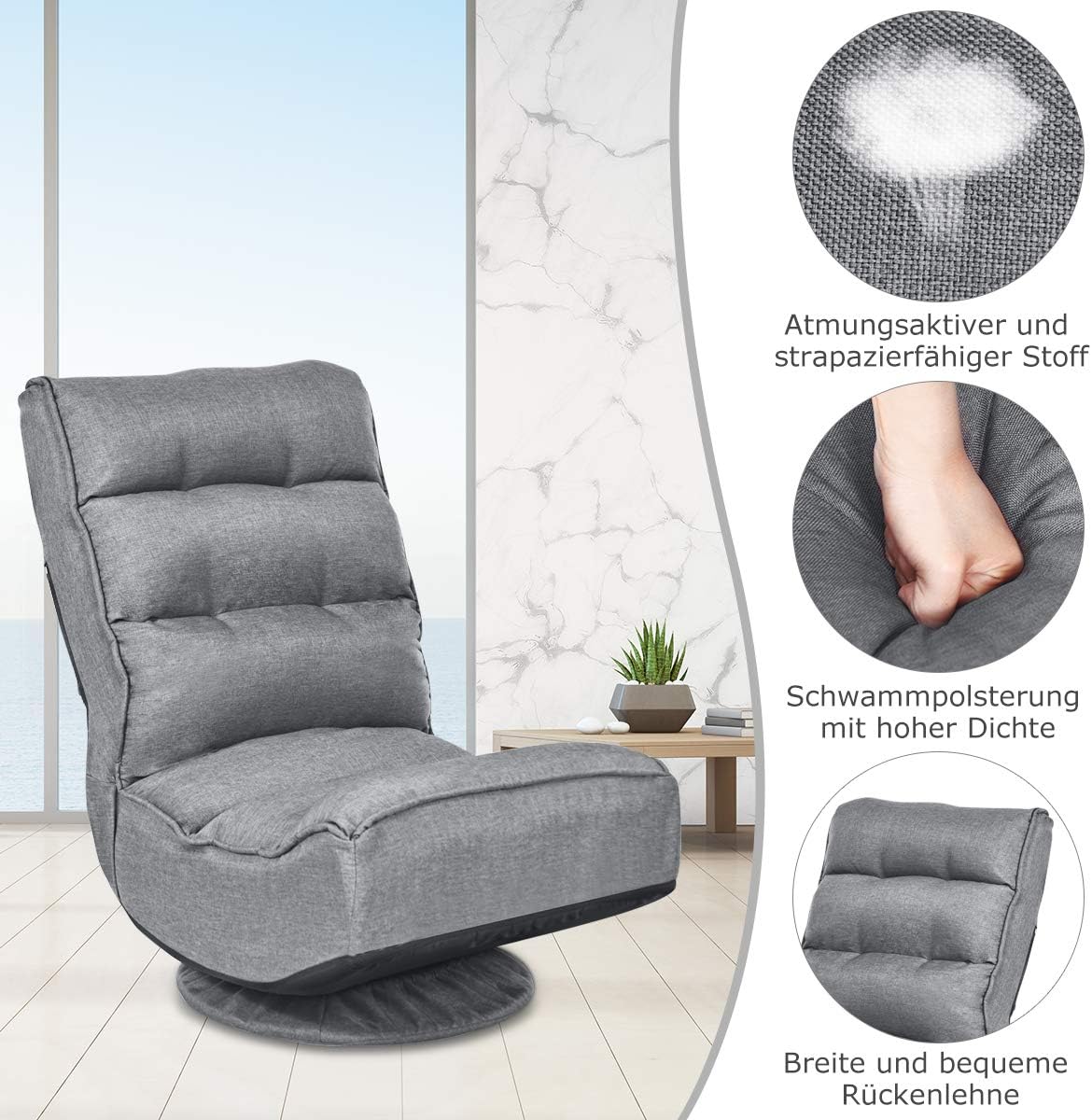 COSTWAY Bodenstuhl 360°drehbar, Bodensessel mit 5-Fach Verstellbarer Rückenlehne, Game Sessel gepols