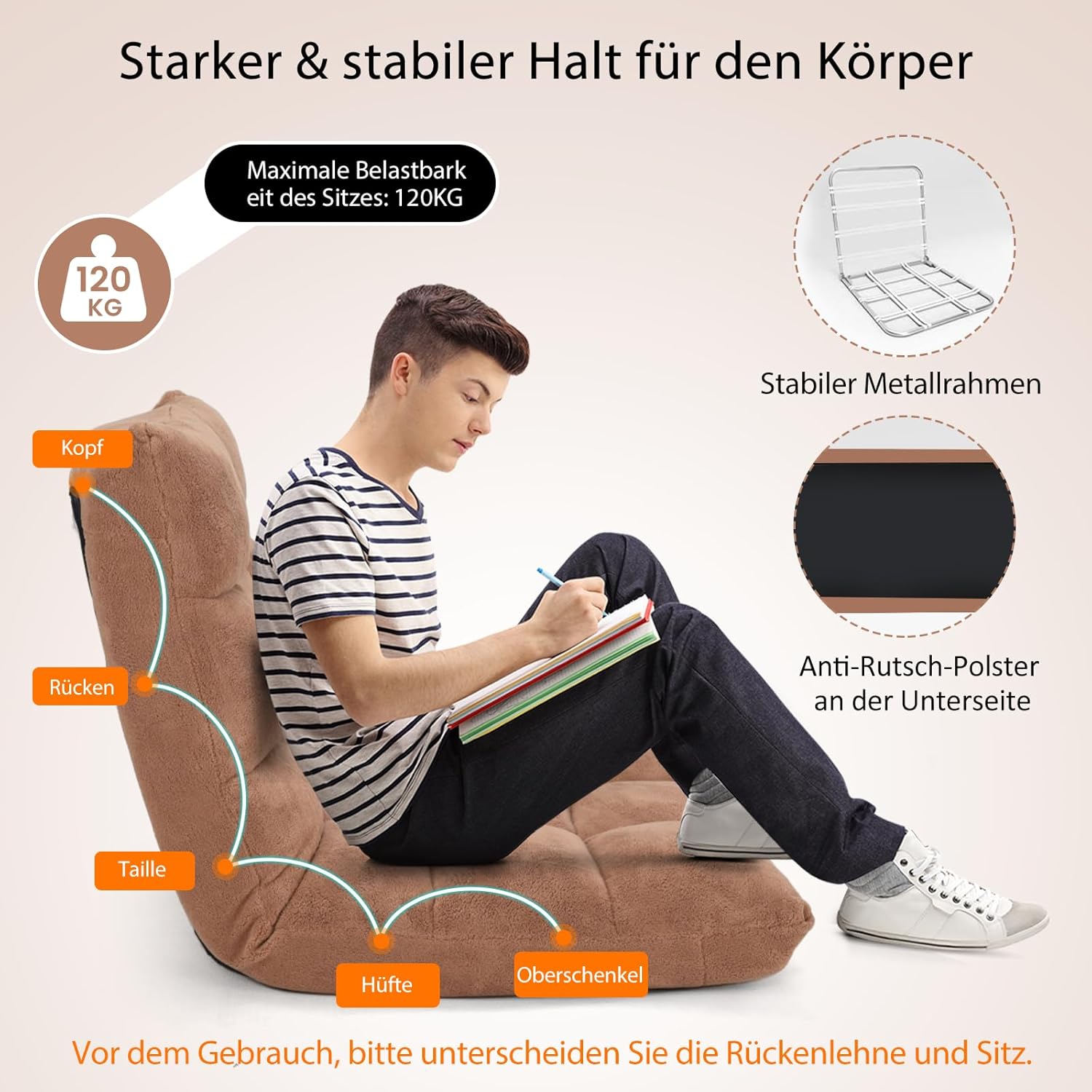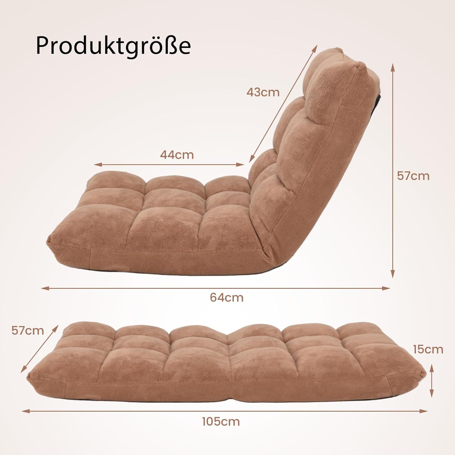 - 【Verstellbarer Rückenlehne】Der verstellbare Sofastuhl bietet Ihnen 14 verschiedenen Positionen, damit Sie nach eigenem Bedürfnis wählen können. Das Bodenkissen passt sich ihrem Körper ideal an, und bietet dadurch maximalen Liege- und Sitzkomfort.
