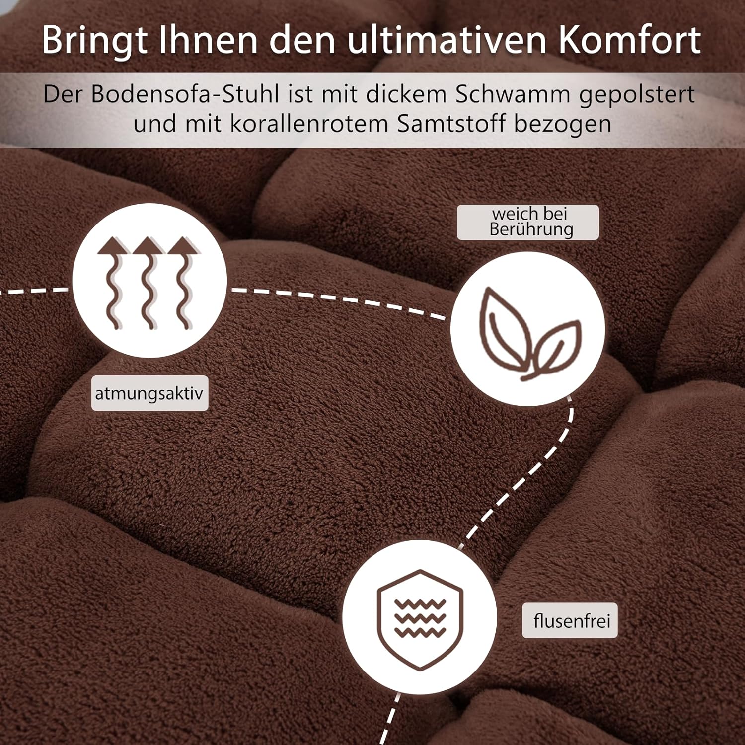 - 【Hochwertiges Material】Der Bodenstuhl besteht aus robusten Stahlrohren und hochwertigem Schwamm, sodass der Stuhl mit guter Stabilität und Tragfähigkeit ist. Mit dem Schwamm ist das Sofa weich und sicher. Ausserdem ist der Oberflächenstoff auch