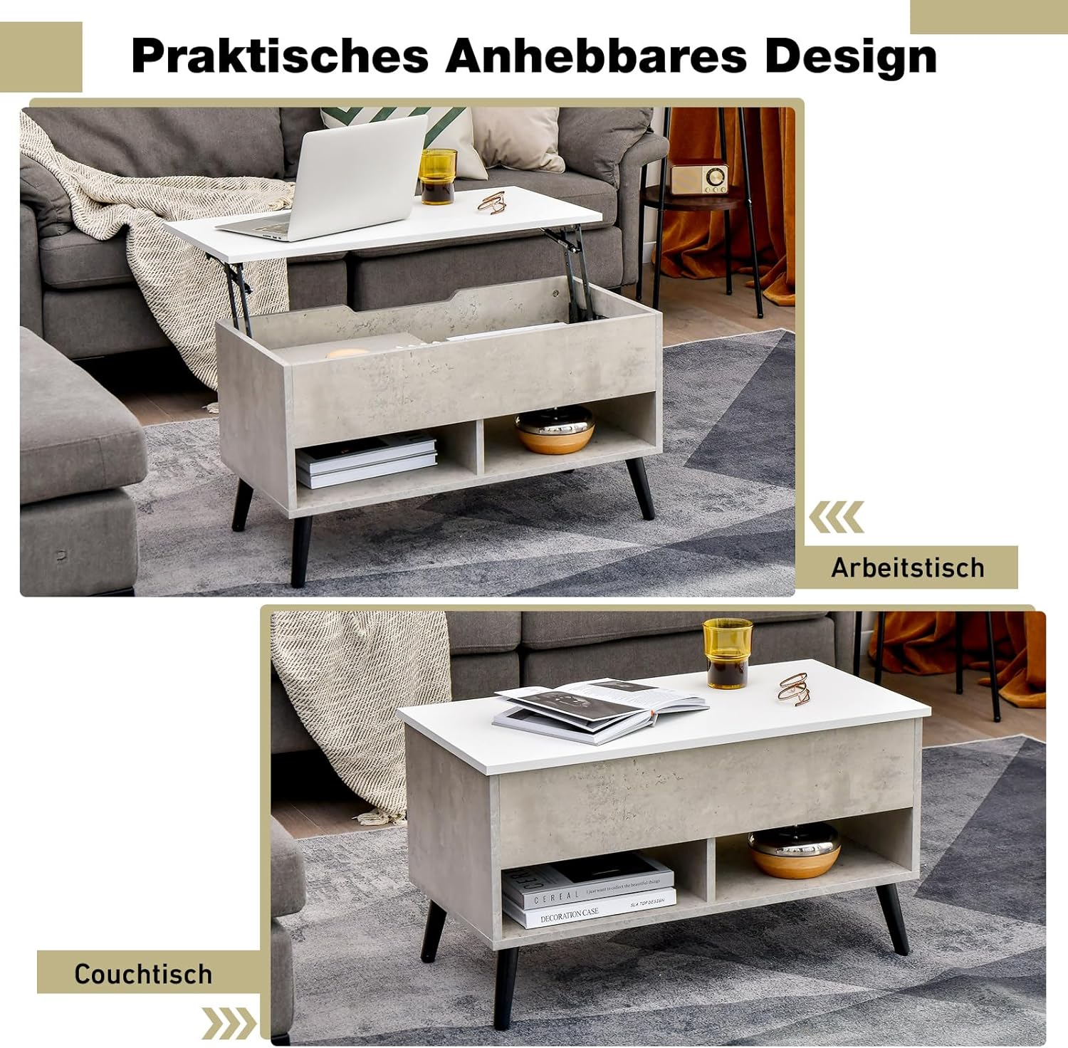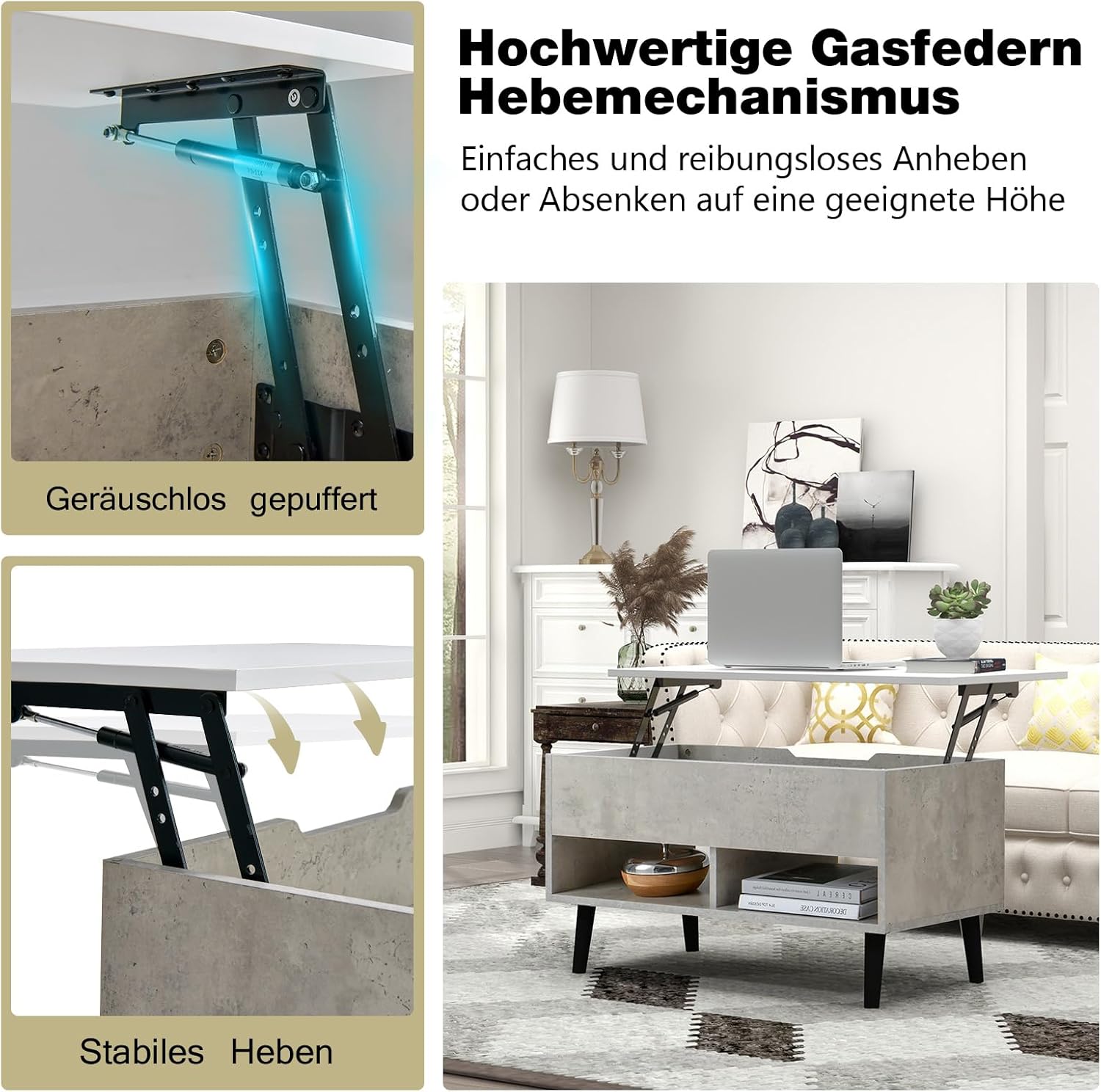 - 【Praktisches Design mit anhebbarer Tischplatte】Dank des hochwertigen Gasdruckmechanismus und der Aussparung lässt sich die Tischplatte mühelos von 44,5 cm auf 58 cm anheben und absenken, so dass ein individueller Arbeits- oder Essbereich entsteht,