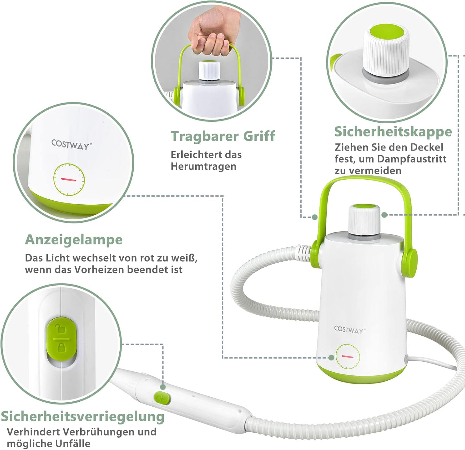 - 【Effiziente Tiefenreinigung】 Dieser chemikalienfreie Dampfreiniger Handgerät mit einem leistungsstarken 1000 W Dampfreiniger Akku und einem Arbeitsdruck von 2-3 bar verfügt über eine Dampftemperatur von bis zu 95 °C für eine optimale