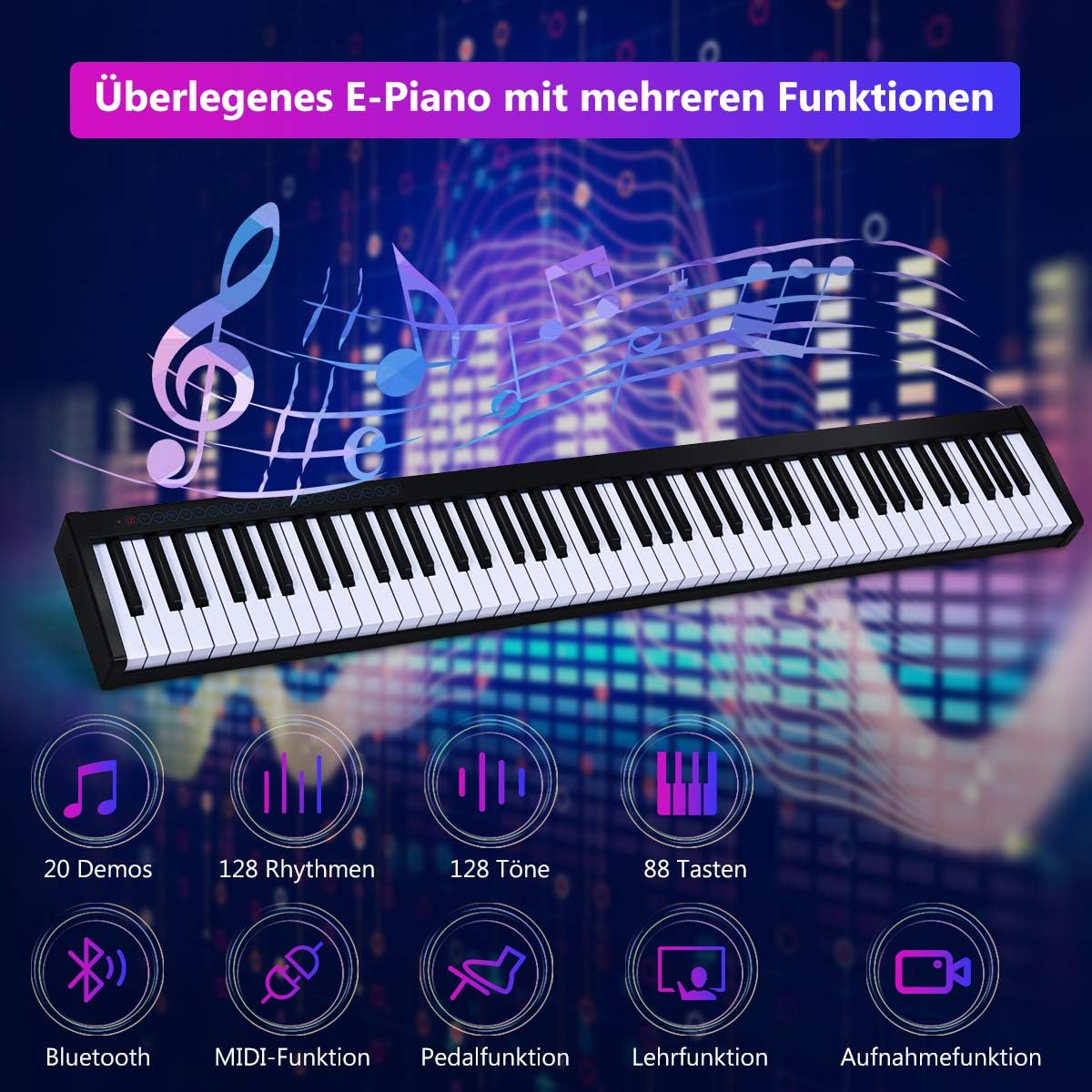 - 【Grosse und gewichtete Tasten für sanftes und sicheres Spielen】 Die grossen und schweren Tasten, 1:1 dem Klaviertastenverhältnis entsprechend, bieten ein komfortables Drücken und für sorgen für eine gleichmässige Tiefe. Die