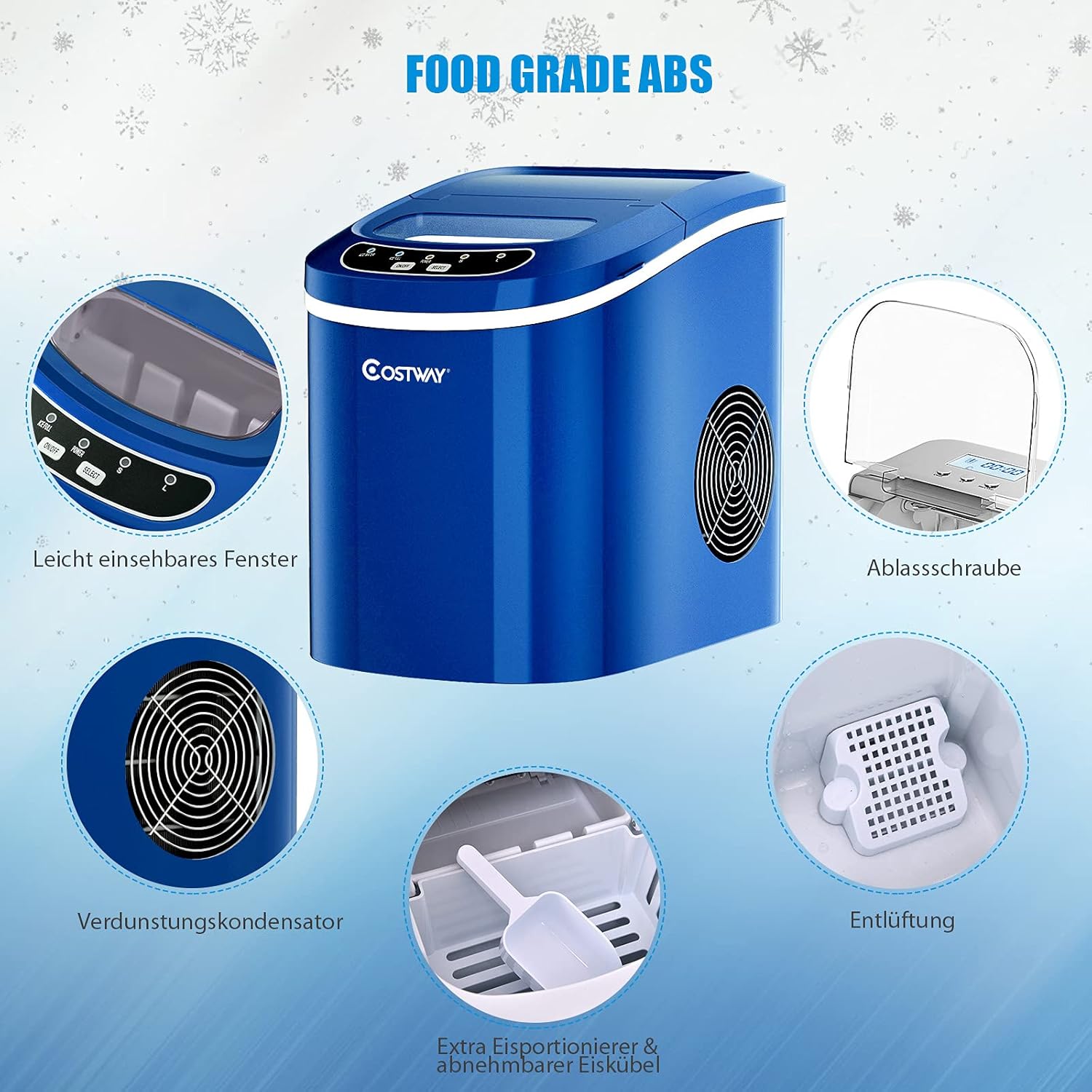 - ❄️【Viele praktische Funktionen 】Das Gerät wird Sie über einen zu niedrigen Wasserstand oder einen vollen Eiskorb informieren. Das einfache Bedienfeld ist sehr benutzerfreundlich.