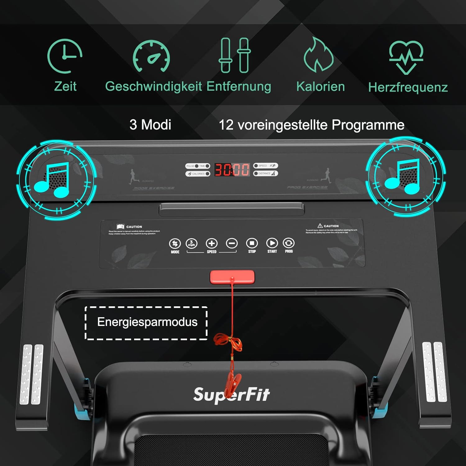 - 【Sehr leise Nutzung】Dieses elektrische Laufband hat einen kraftvollen Motor. Ausserdem bietet es Ihnen 12 voreingestellte Programme und 3 Modi, die Sie je nach Bedarf auswählen können. Da es sehr leise ist, werden Sie so niemanden stören.
