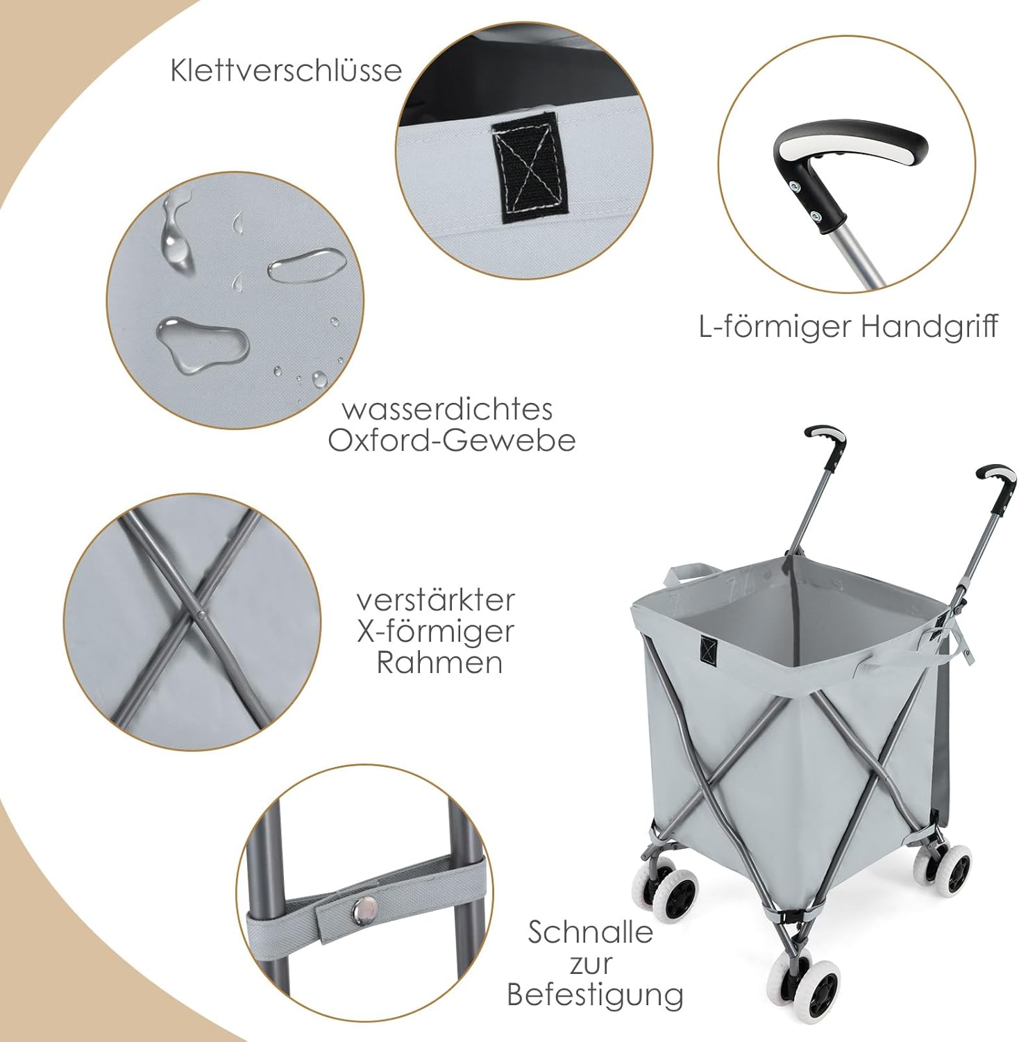 - 【Zusammenklappbarer Einkaufstrolley】 Dieser Einkaufswagen kann auf eine kompakte Grösse von 20 x 24,5 x 109 cm (L x B x H) zusammengeklappt werden. Mittlerweile beträgt das Nettogewicht nur noch 4 kg. Daher ermöglicht Ihnen dieser Einkaufswagen