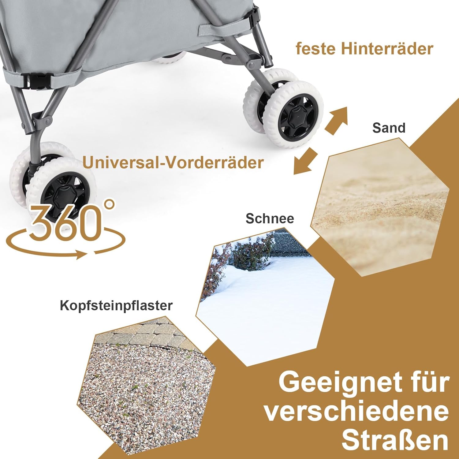 - 【Flexible Bewegung】 Dieser praktische Einkaufswagen ist mit 2 universellen Vorderrädern und 2 festen Hinterrädern ausgestattet, die rutschfest, stossfest und leise sind. Und diese Räder sind für verschiedene Strassen wie Sand, Schnee,