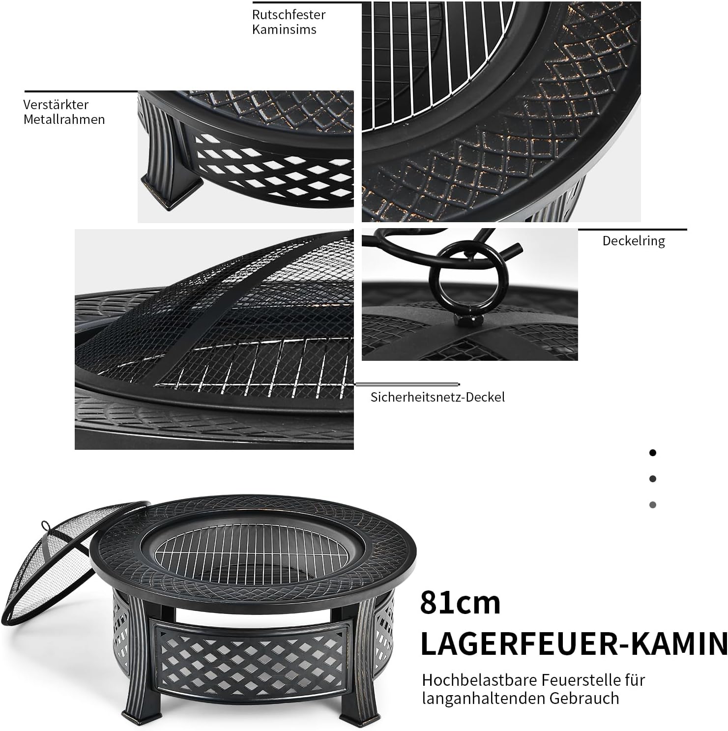 - 【Ausgezeichnetes Material & Stabiler Rahmen】 Unsere Feuerstelle ist aus hochwertigem Stahl mit hochtemperaturbeständiger Oberfläche gefertigt, die rostfrei ist und verschiedenen Wetterbedingungen für einen langfristigen Betrieb standhalten kann.