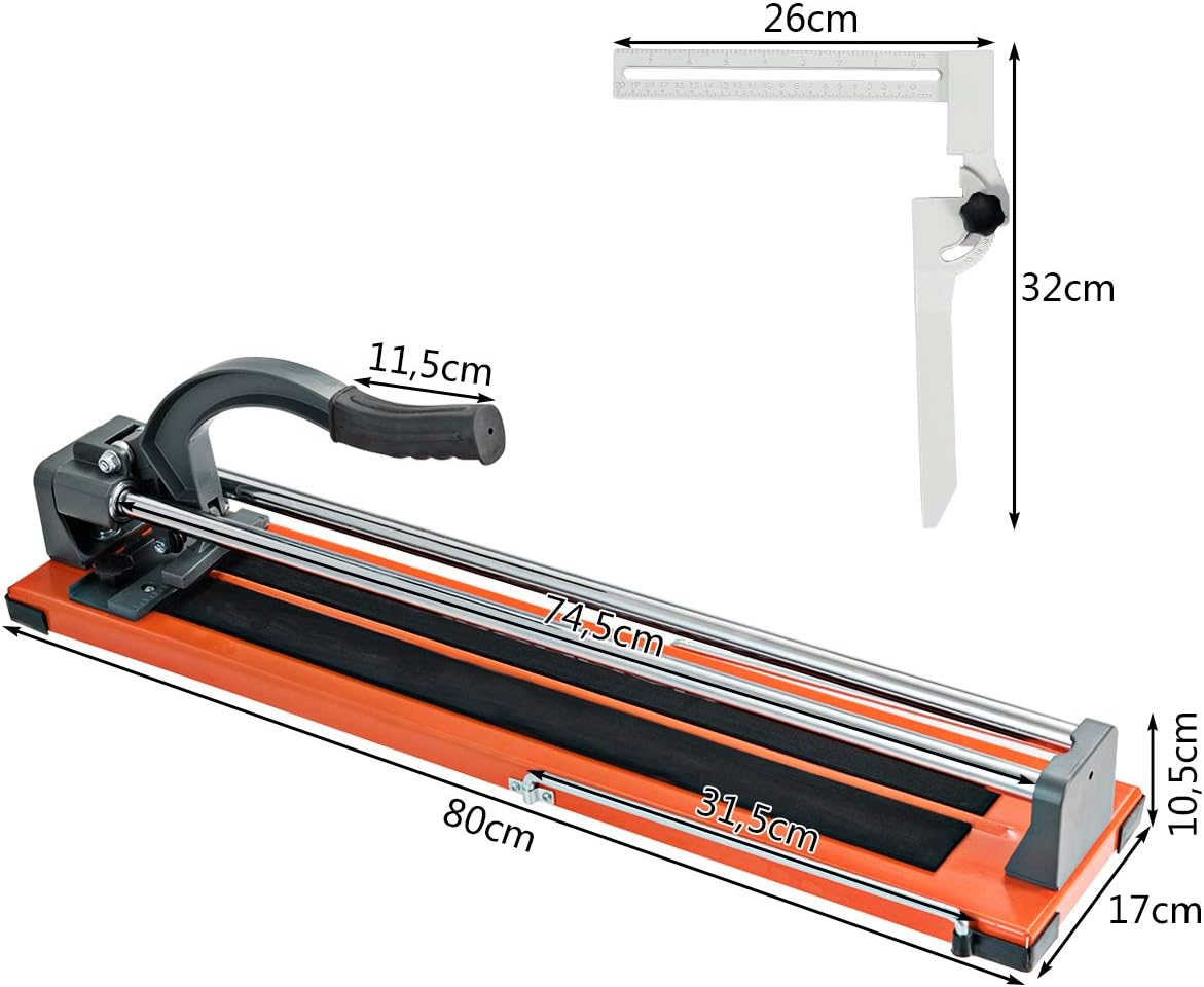 - ✂️【Geeignet für alle Arten von Fliesen】Der manuelle Fliesenschneider schneidet Keramikfliesen bis zu einer Länge von 100 cm und einer Breite von 40,5 cm. Die Schnittdicke liegthierbei zwischen 5mm und 12mm. Er ist daher ideal sowohl für