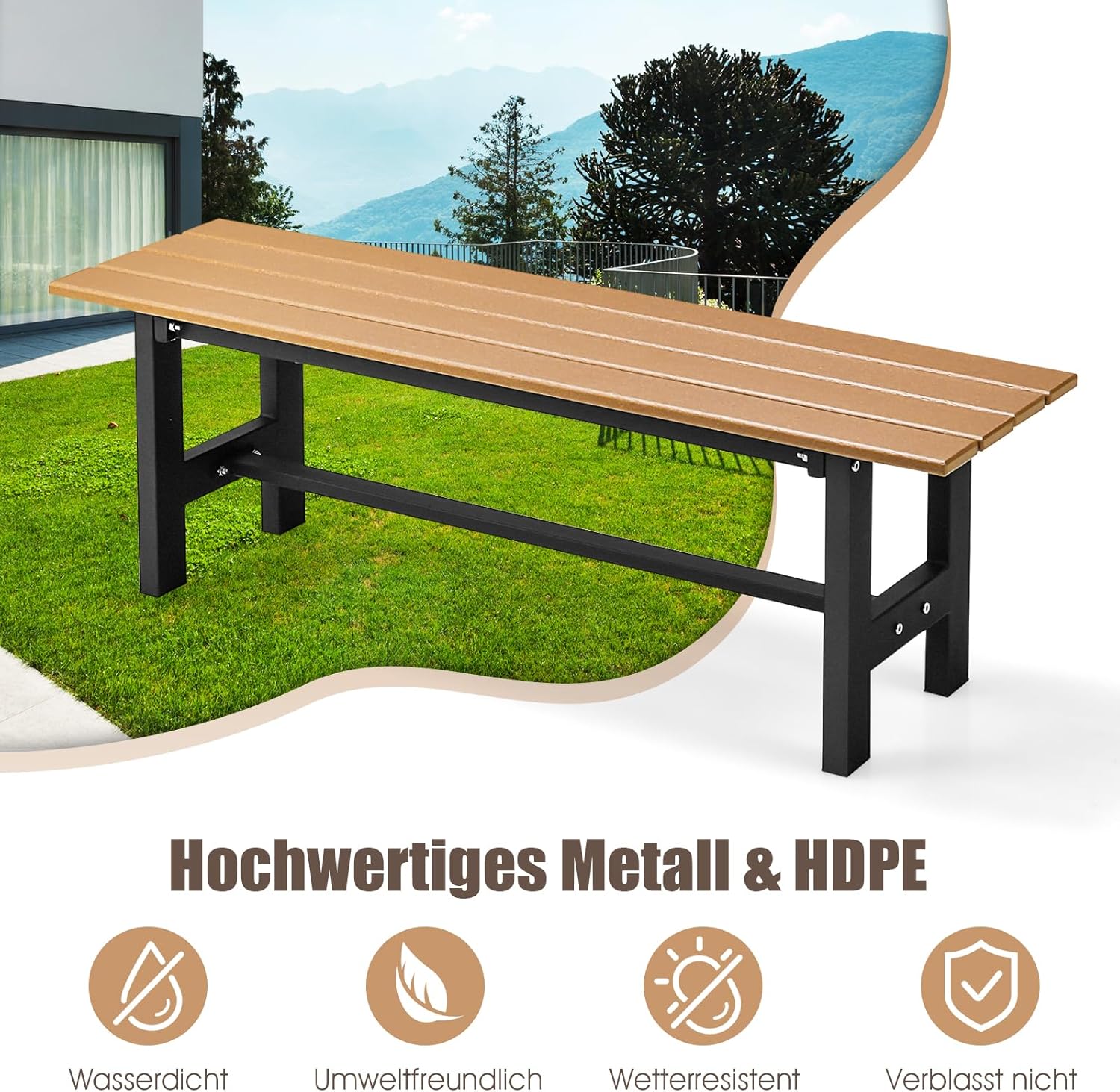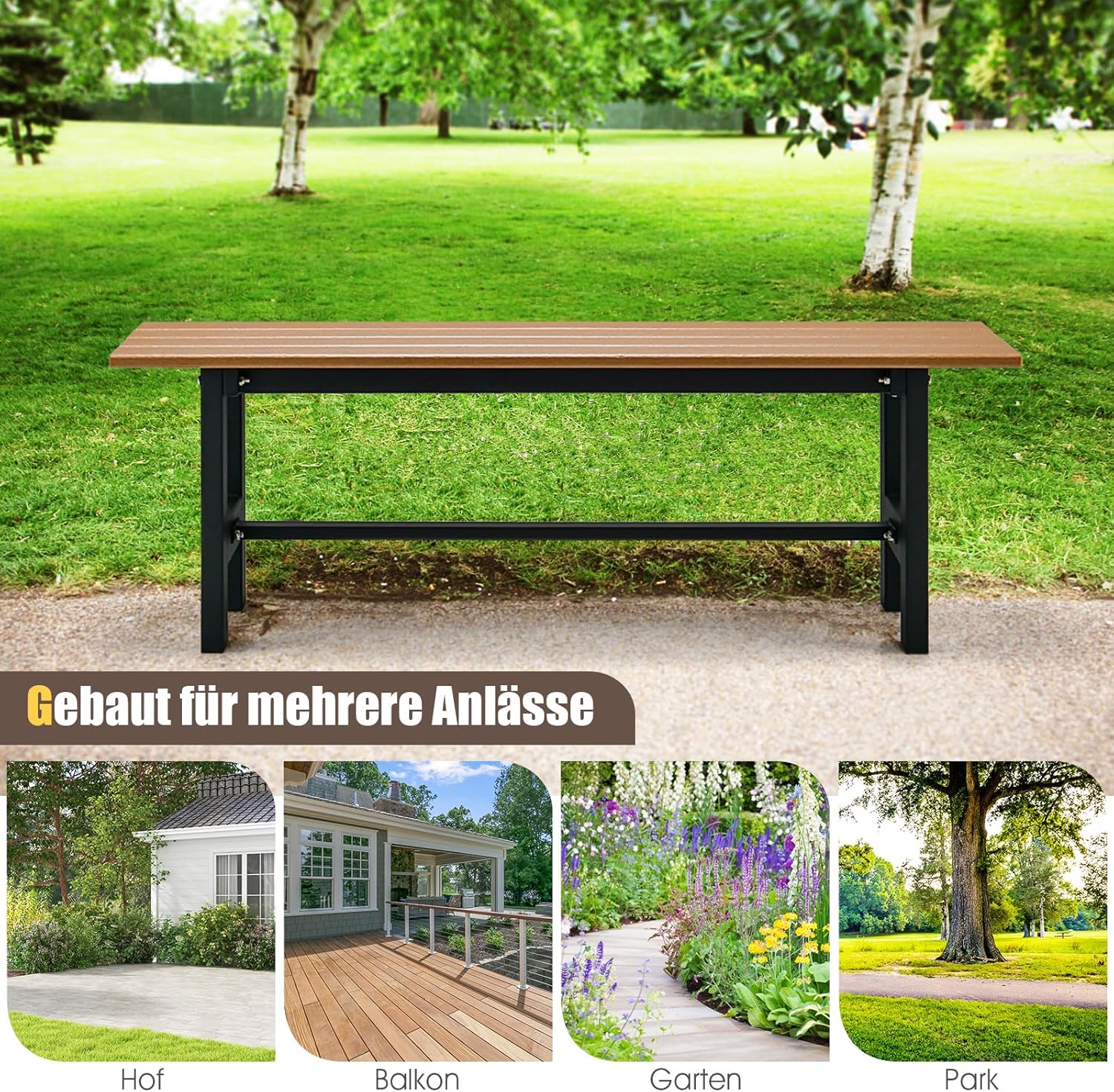 - 【Hochwertiges Metall und HDPE】Hergestellt aus kunststoffbeschichtetem Metall, das sich durch seine Wasser- und Witterungsbeständigkeit auszeichnet, garantiert der Rahmen dieser Bank eine lange Lebensdauer. Darüber hinaus besteht die Sitzbank aus
