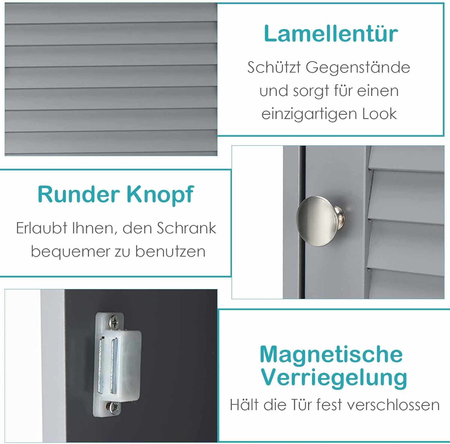 - 【Höhenverstellbare Innenfächer】 Der Schrank verfügt über eine aufklappbare Tür und 2 Innenfächer, die reichlich Stauraum für all Ihre Bedarfsartikel bieten. Die Fächer lassen sich hierbei nach Belieben auf 3 verschiedene Höhen verstellen.
