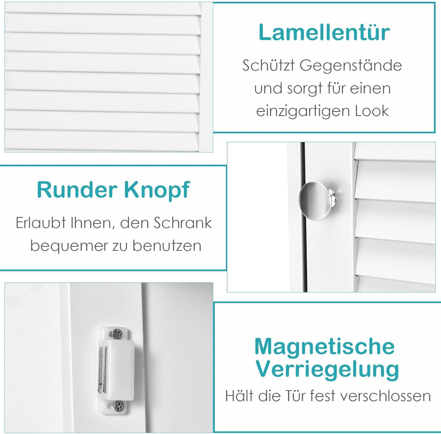 - 【Höhenverstellbare Innenfächer】 Der Schrank verfügt über eine aufklappbare Tür und 2 Innenfächer, die reichlich Stauraum für all Ihre Bedarfsartikel bieten. Die Fächer lassen sich hierbei nach Belieben auf 3 verschiedene Höhen verstellen.
