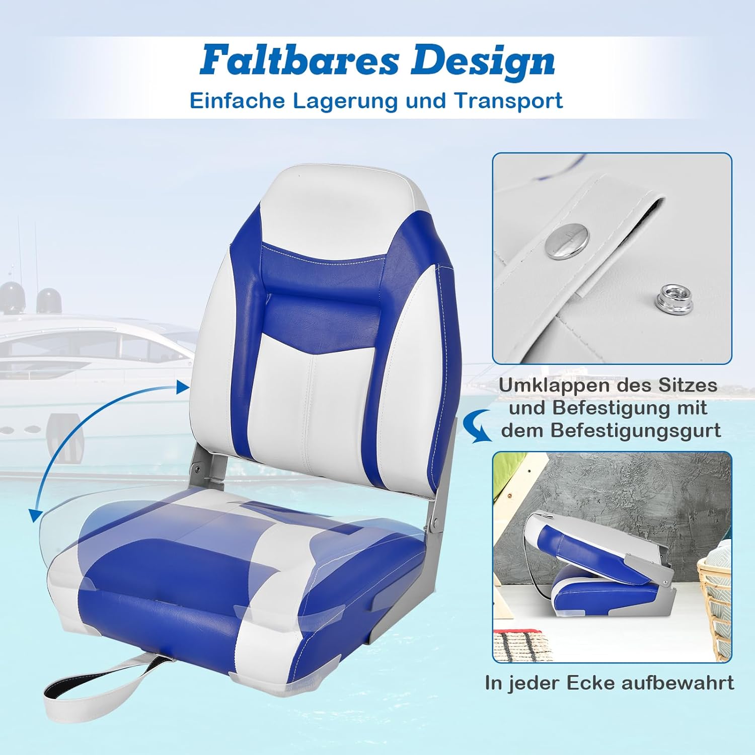 - 【Breites Anwendungsspektrum】Unser Bootssitz in klassischer Schwarz/Blau-Farbe kann gut zu Ihrem Boot oder Yacht passen. Ausserdem ist er ultraportabel und komfortabel und somit ein perfekter Begleiter für Ihre Segel-, Angel- und andere