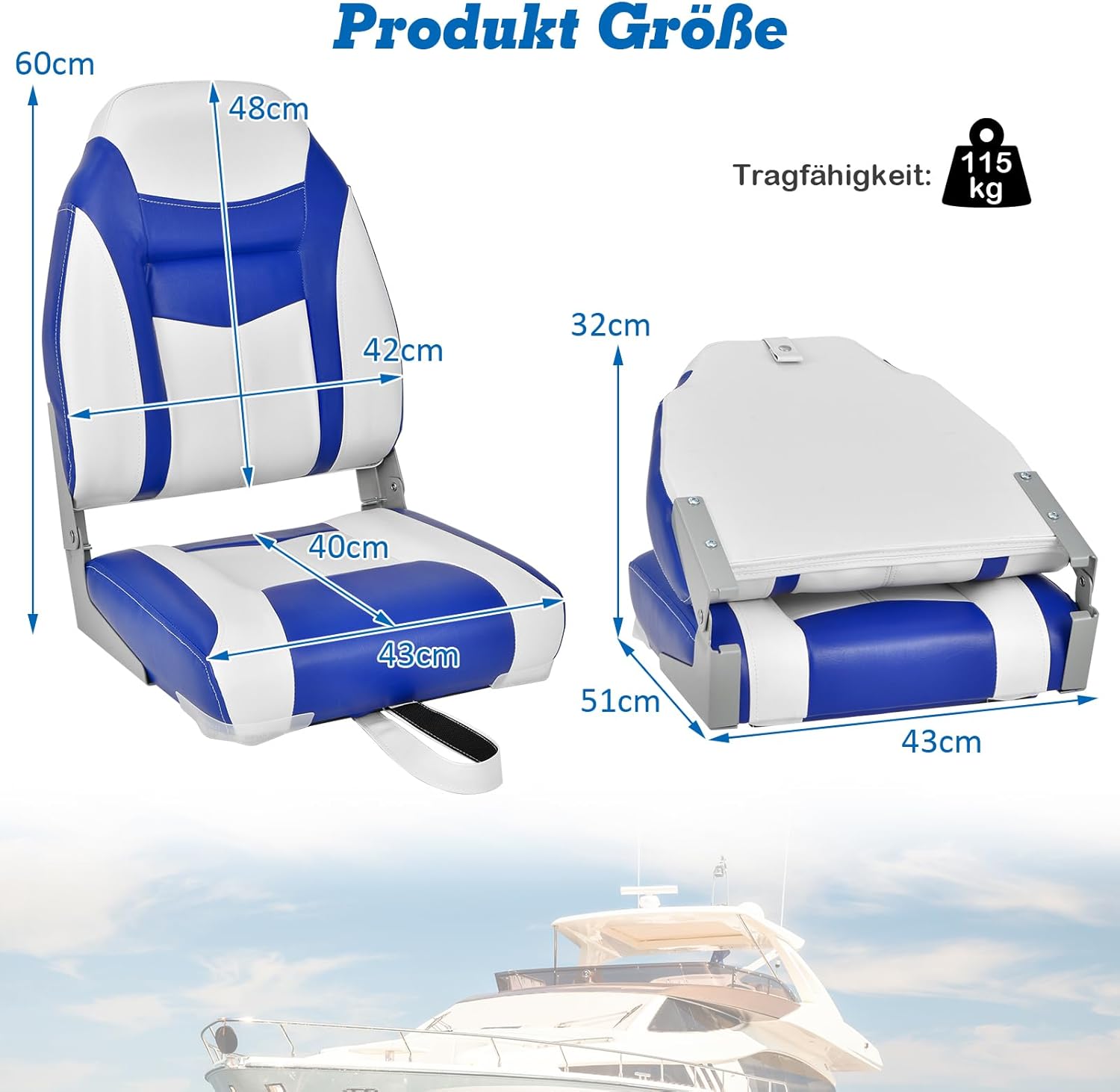 - 【Breites Anwendungsspektrum】Unser Bootssitz in klassischer Schwarz/Blau-Farbe kann gut zu Ihrem Boot oder Yacht passen. Ausserdem ist er ultraportabel und komfortabel und somit ein perfekter Begleiter für Ihre Segel-, Angel- und andere