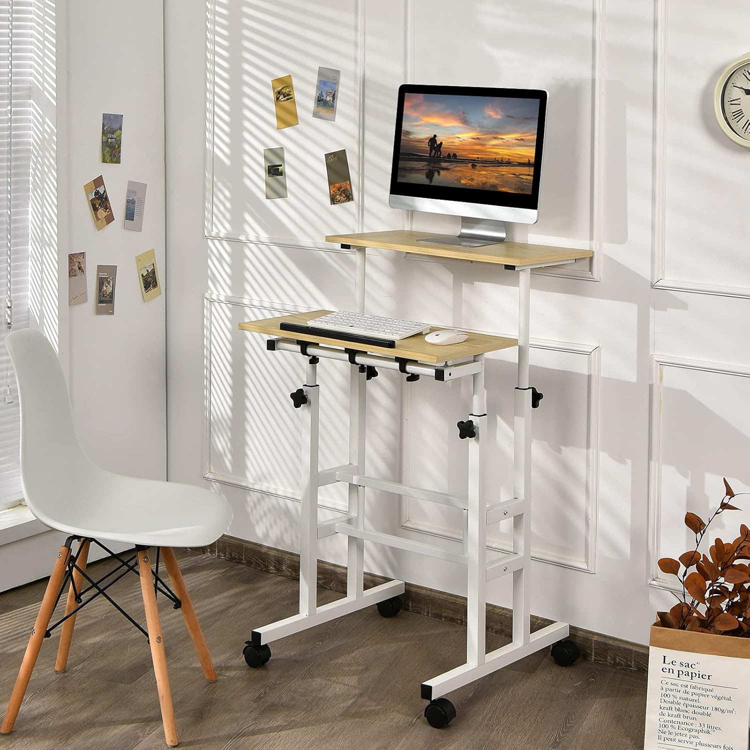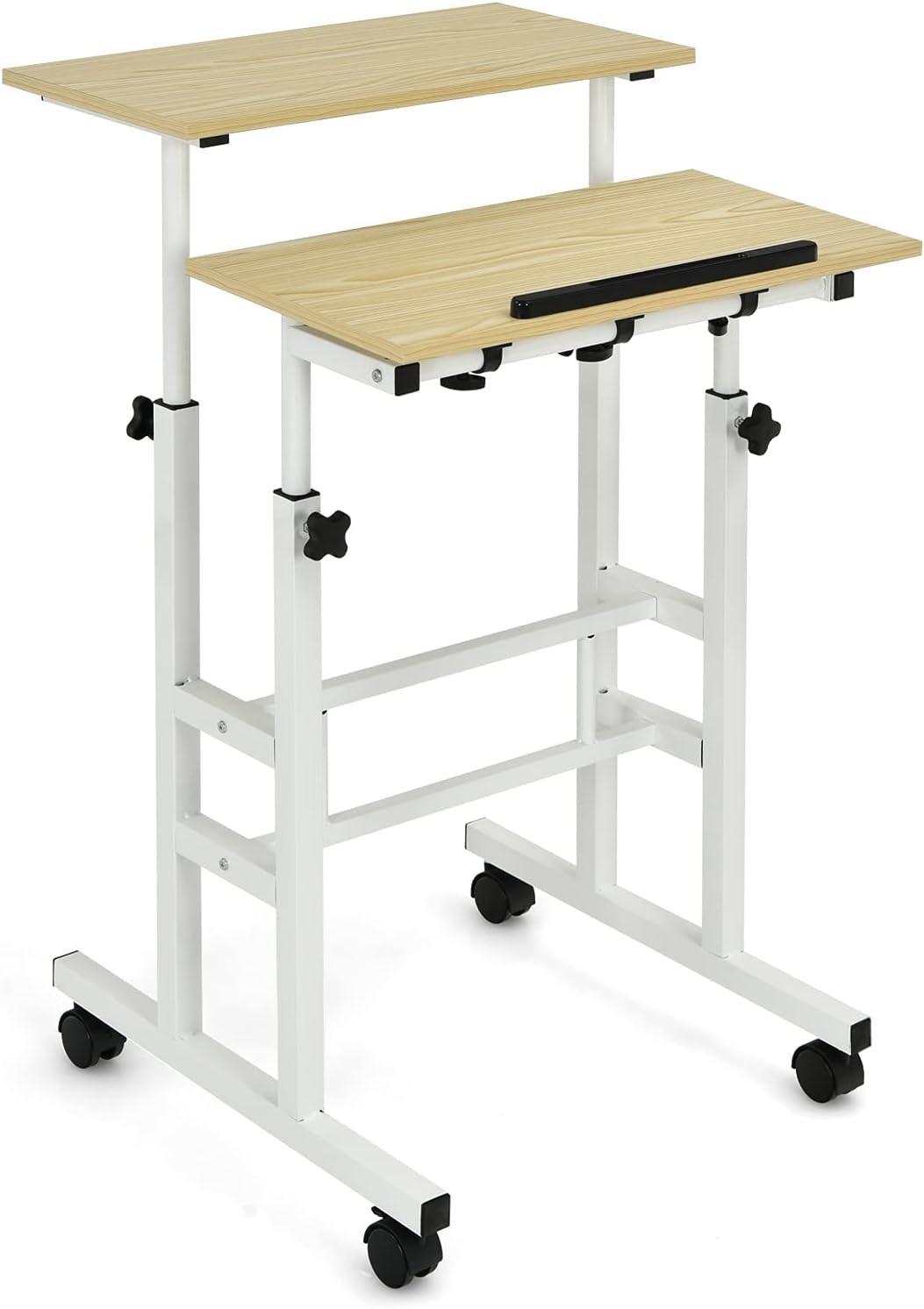 COSTWAY höhenverstellbarer Sitz-Steh Schreibtisch auf Rollen, Mobiler Stehschreibtisch mit 2-stufige