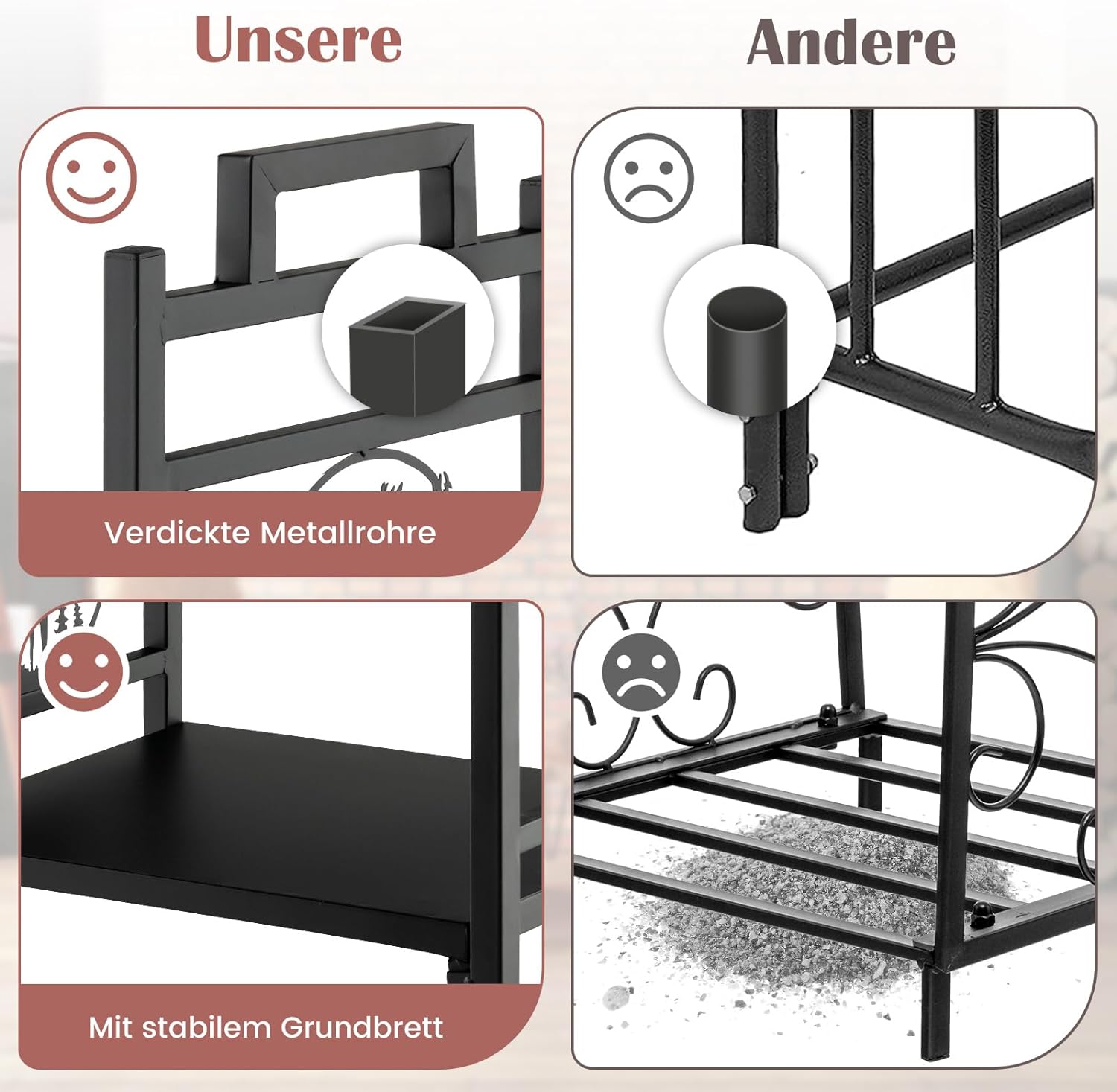 - 【Robuste und rostfreie Metallkonstruktion】Dieses aus hochwertigem Metall gefertigte Brennholzregal hält dem Verschleiss des täglichen Gebrauchs stand. 4 blumenförmige Polster sorgen für Stabilität und ermöglichen dem Benutzer gleichzeitig die