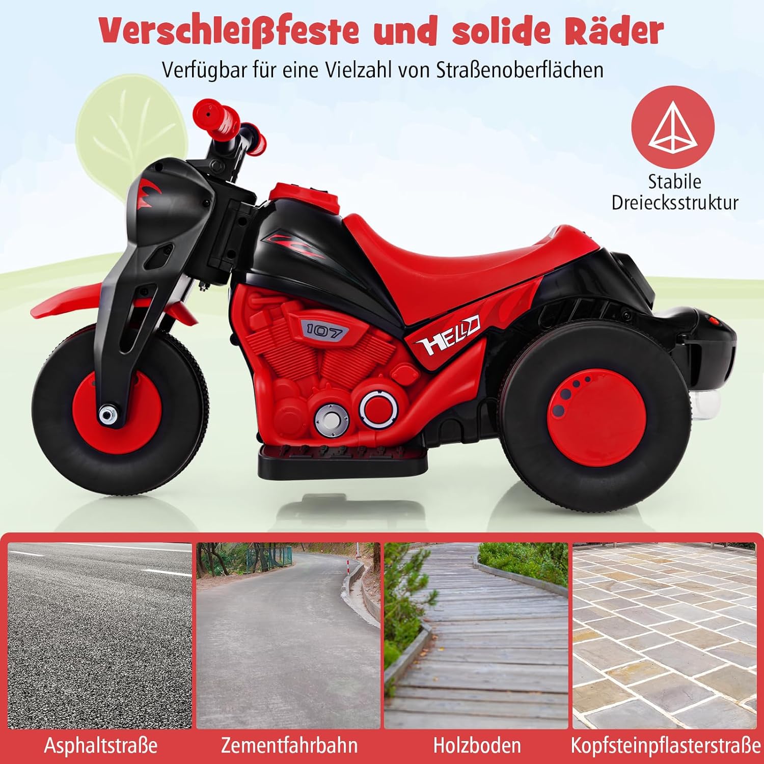 - 【Abriebfeste und solide Räder】 Ausgestattet mit abriebfesten PP-Rädern ist dieses elektrische Kinderfahrrad für eine Vielzahl von Strassenoberflächen wie Holzboden, Ziegelstrasse, Zementstrasse oder Asphaltstrasse geeignet.