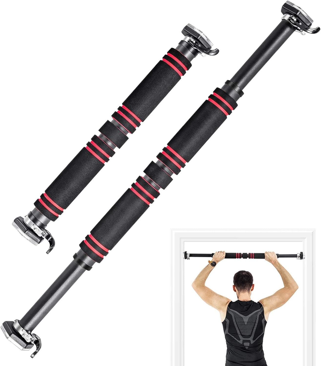 - 【Schaumstoffgriff & Gummiring】 Die Schaumstoffgriffe sind weich und rutschfest, was für die Sicherheit und Stabilität sorgt. Durch die Gummiringe wird der Türrahmen zudem vor Kratzern geschützt.