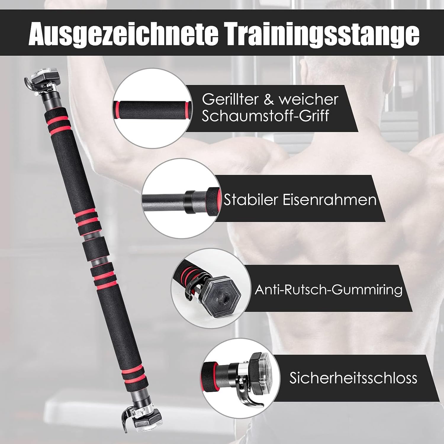- 【Vielseitige Nutzung】 Die Stange kann für verschiedenste Übungen genutzt werden, beispielsweise für Klimmzüge. So werden die Muskeln des ganzen Körpers gestärkt, sei es nun der Rücken oder die Arme.