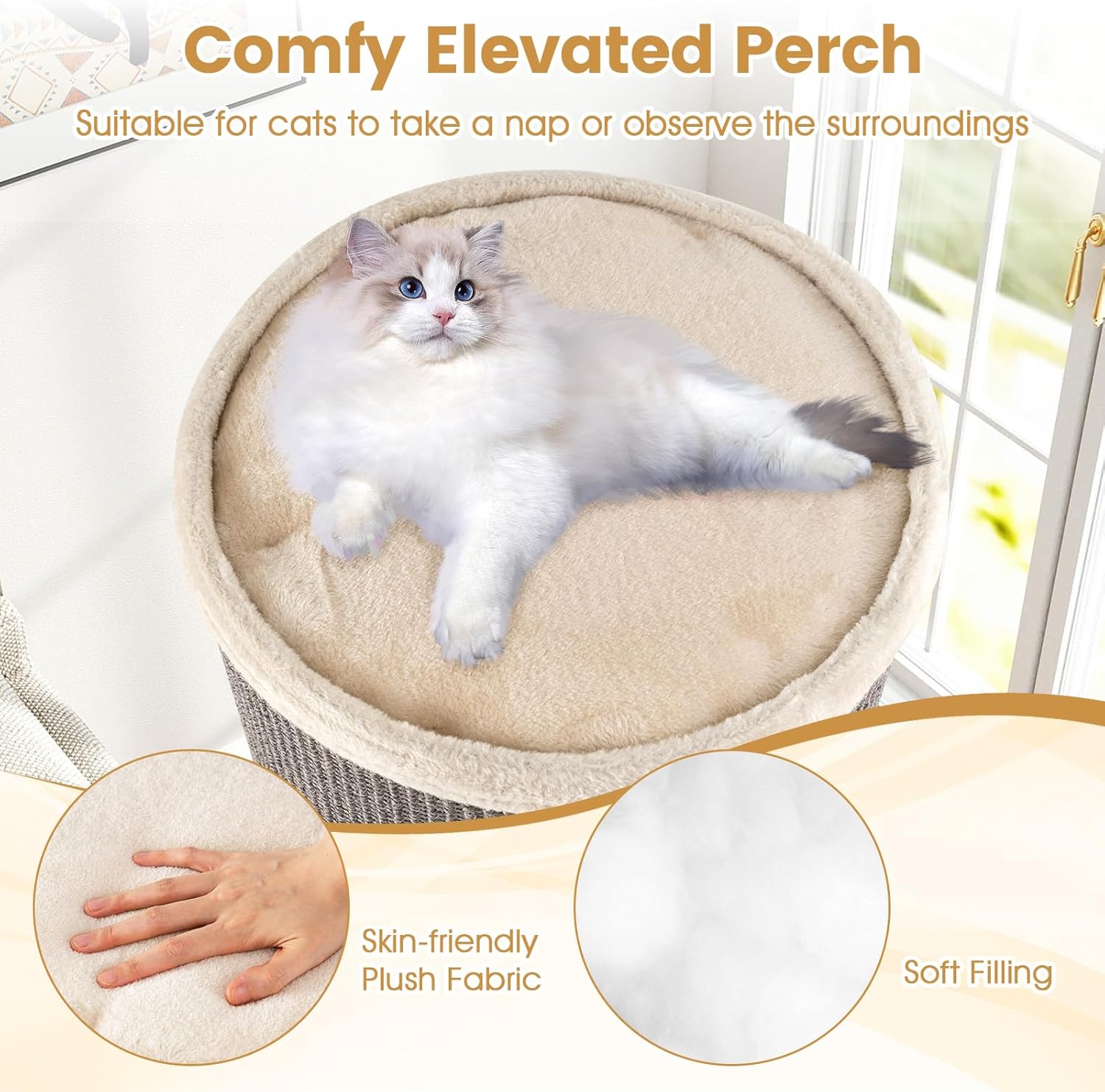 - 【Erhöhter Kuschelsitz】 Das 4-stöckige Katzenhaus verfügt über einen weichen Sitzplatz, der Ihre pelzigen Begleiter in Wärme und Komfort hüllt. Die weiche Polsterung eignet sich perfekt zum Ausruhen oder um hoch oben zu sitzen und den Raum zu