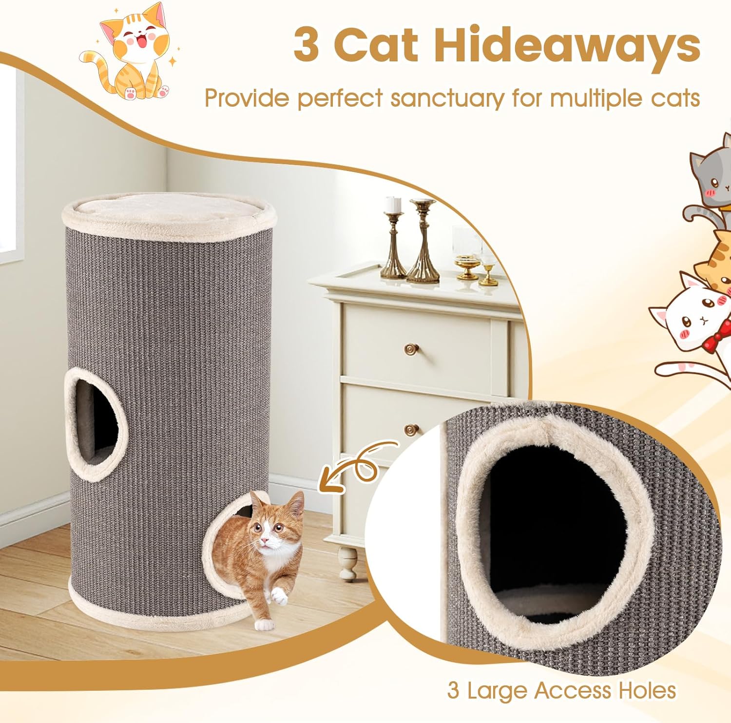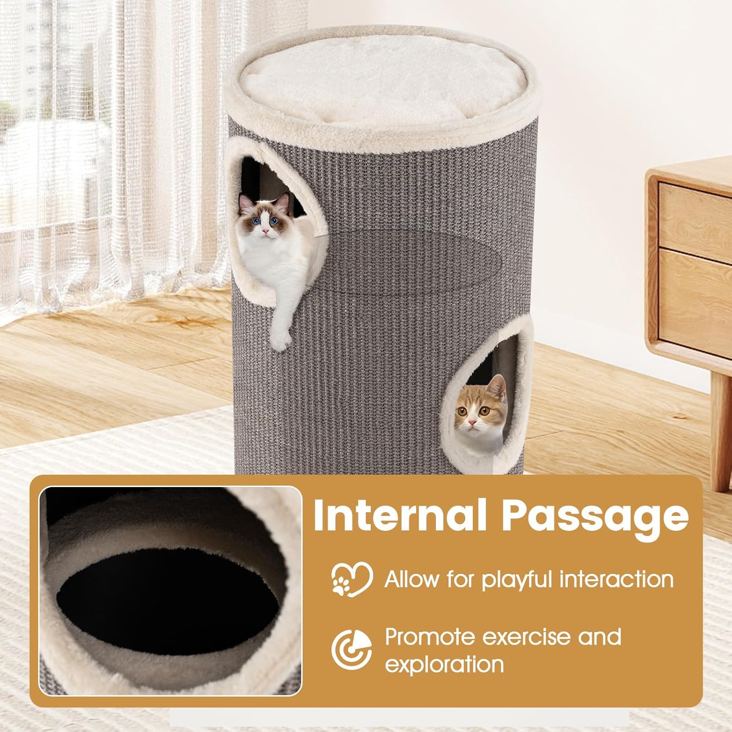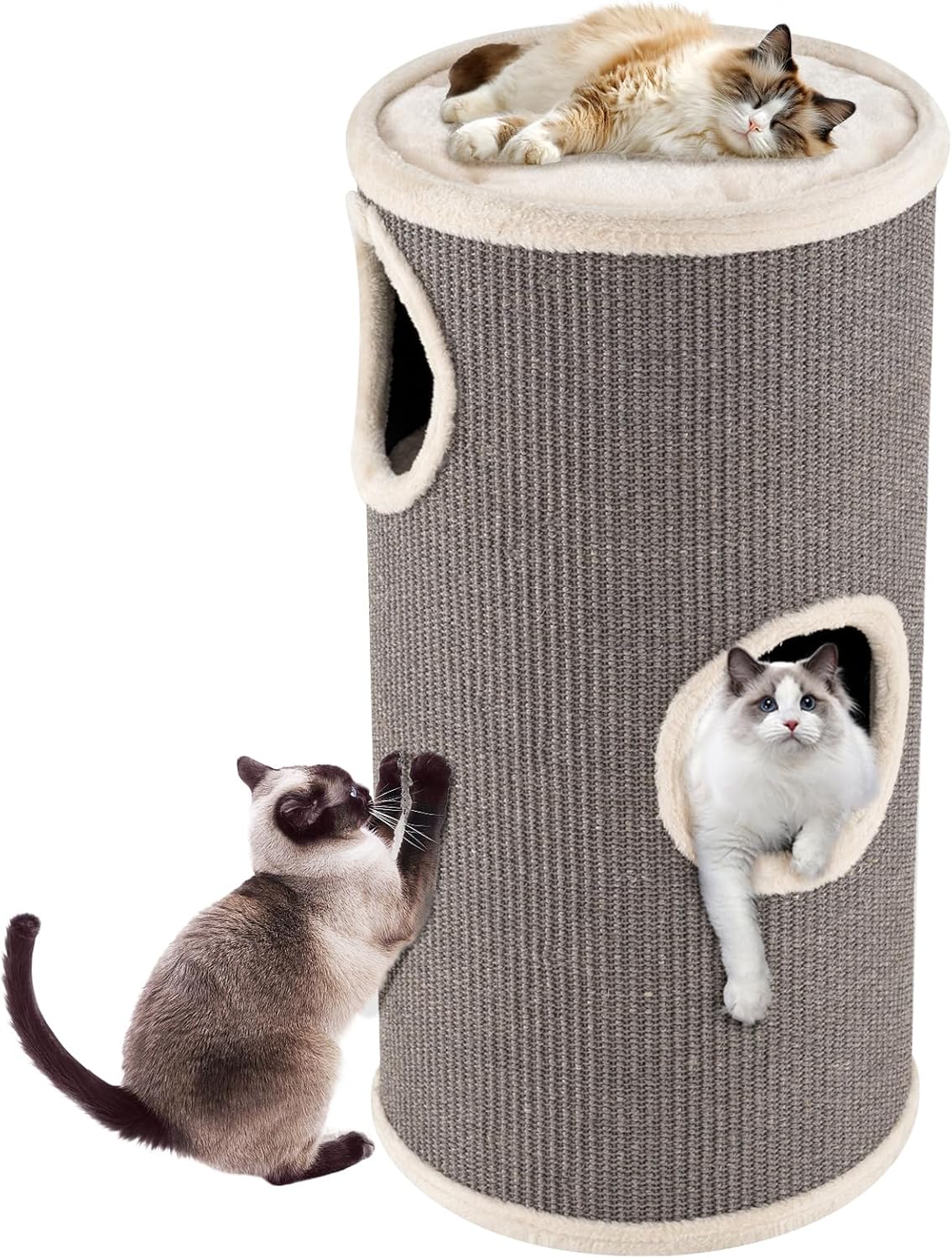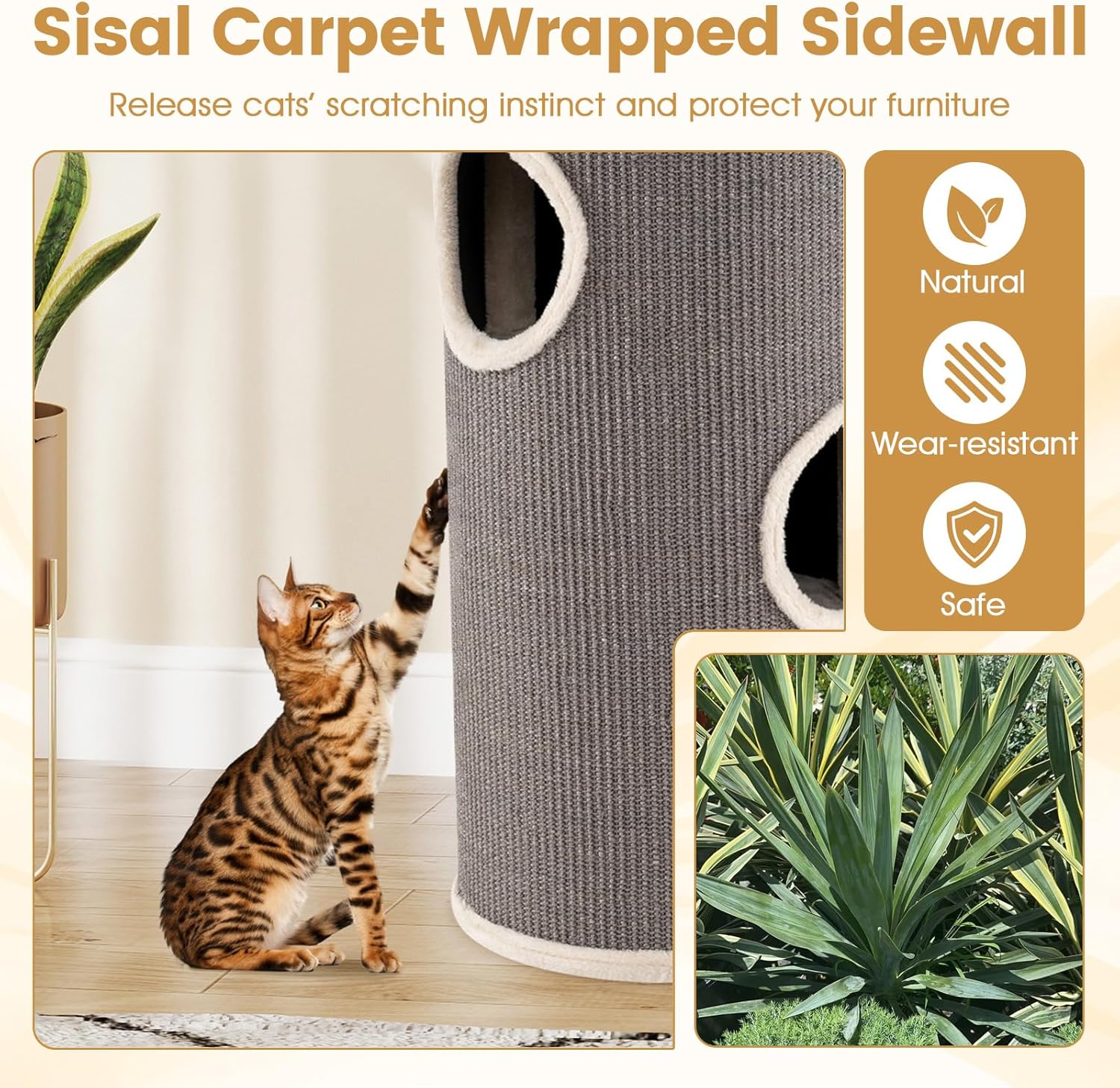 - 【Sisal-Kratzbrett】 Ausgestattet mit einem mit natürlichem Sisal umwickelten Kratzbrett fördert der mehrstöckige Katzenturm eine gesunde Krallenpflege und schützt gleichzeitig Ihre Möbel vor Kratzspuren.