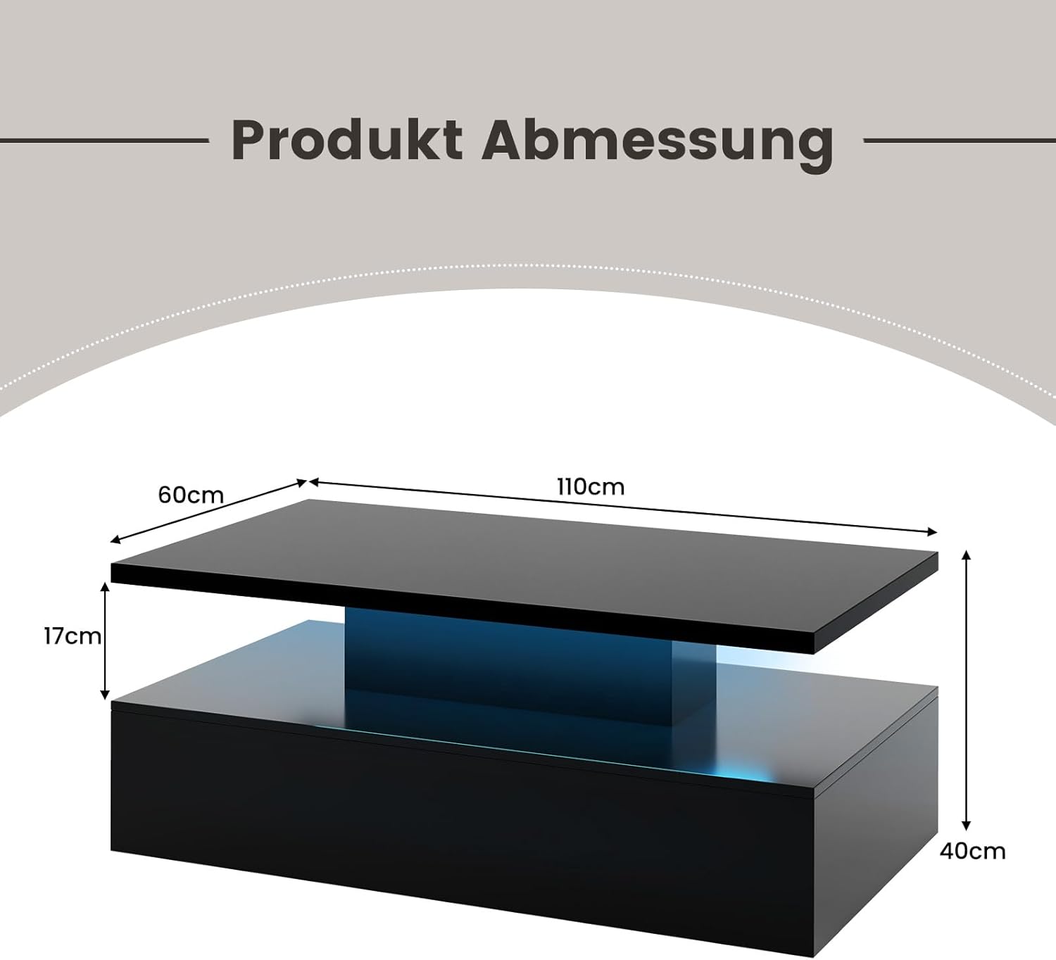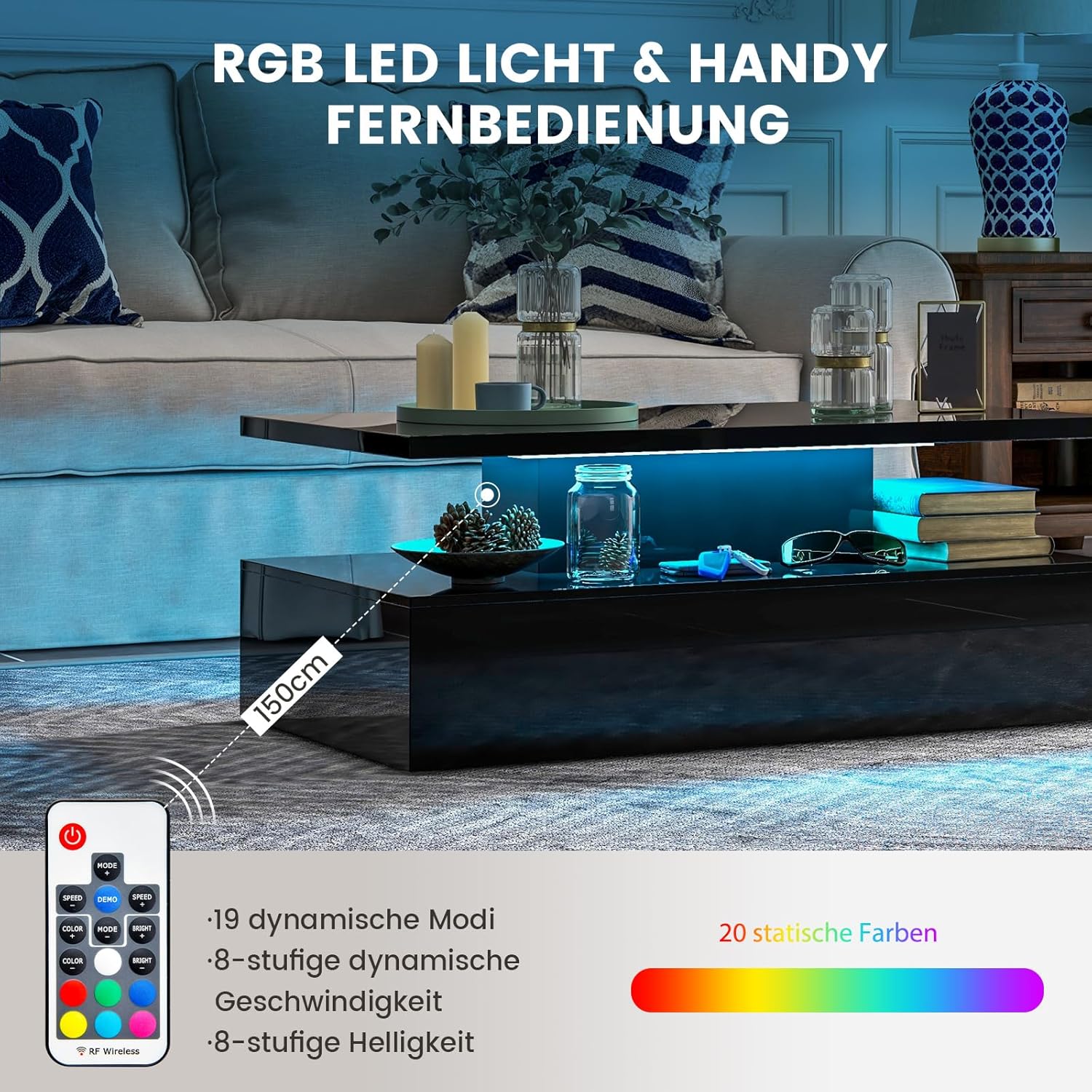 - 【Klassisches geradliniges Design】Dieser moderne LED-Couchtisch schafft eine bezaubernde Dekoration. Sein elegantes Design in reinem Schwarz passt perfekt zu anderen Möbeln und verleiht Ihrer Wohnumgebung ästhetische Schönheit, sei es im
