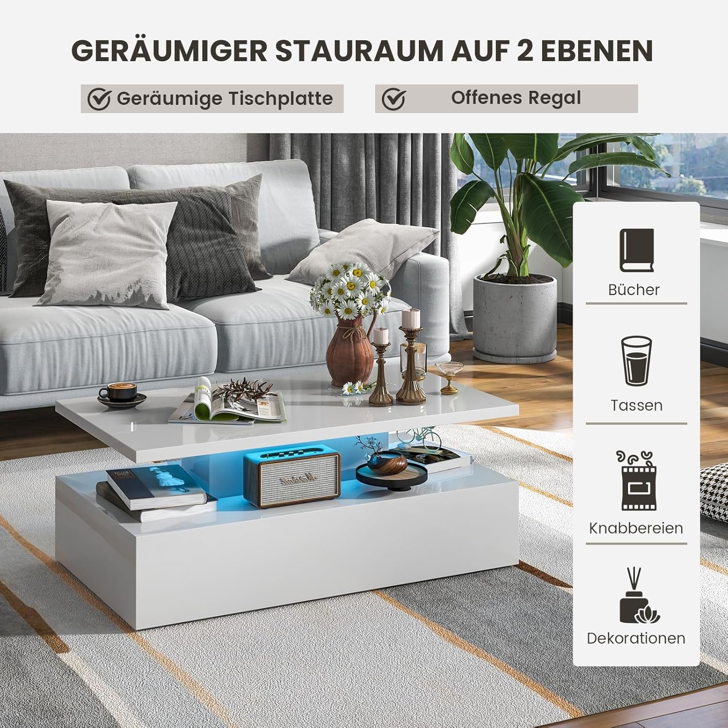 - 【Klassisches geradliniges Design】Dieser moderne LED-Couchtisch schafft eine bezaubernde Dekoration. Sein elegantes Design in reinem Weiss passt perfekt zu anderen Möbeln und verleiht Ihrer Wohnumgebung ästhetische Schönheit, sei es im Wohnzimmer,