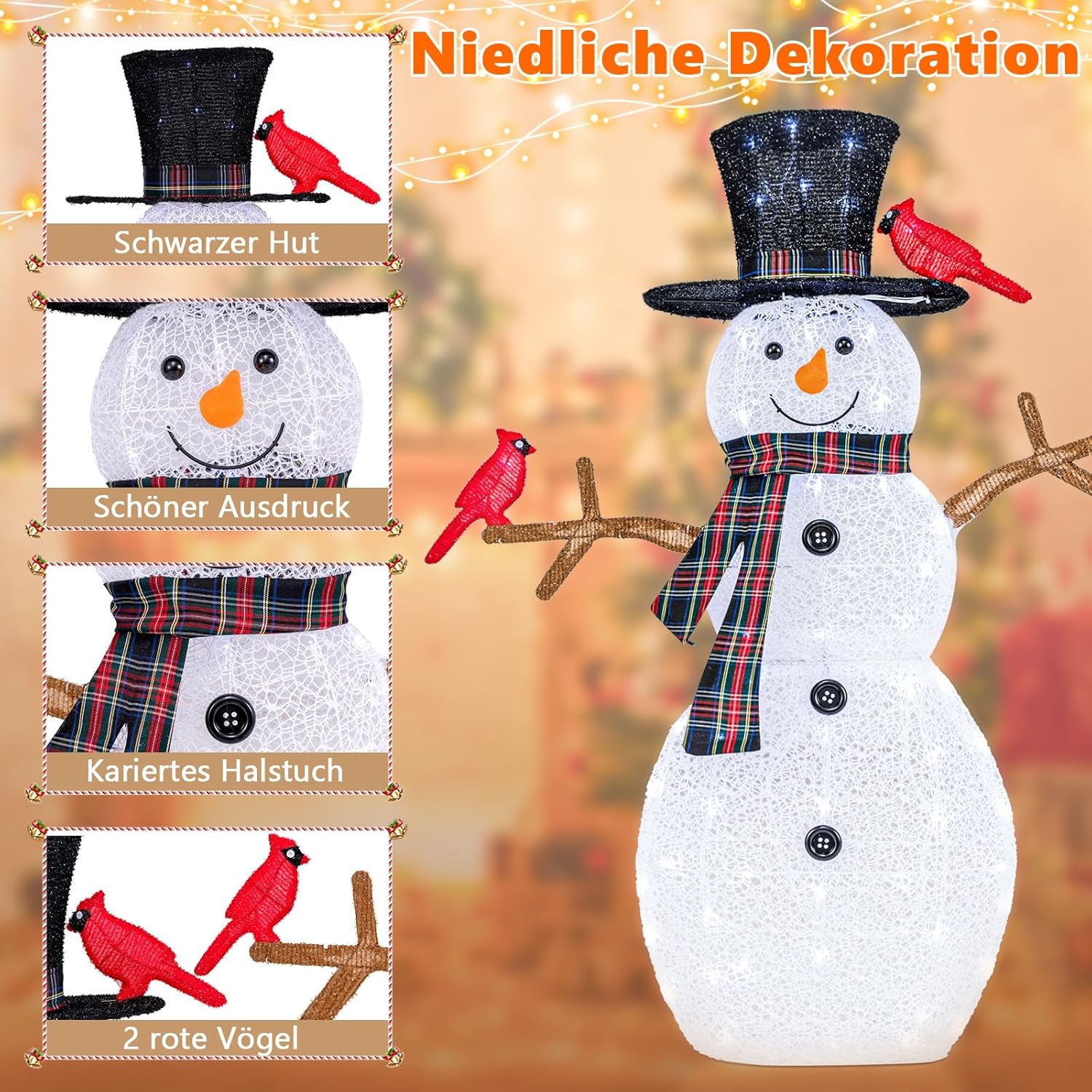 - 【Innen- und Aussendekoration】Die beleuchtete festliche Schneemann-Dekoration misst 99 x 16 x 127 cm (L x B x H) und kann eine perfekte Dekoration für jeden Aussen- oder Innenbereich sein, wie Ihr Zuhause, Ihre Veranda, Ihren Innenhof, Ihre