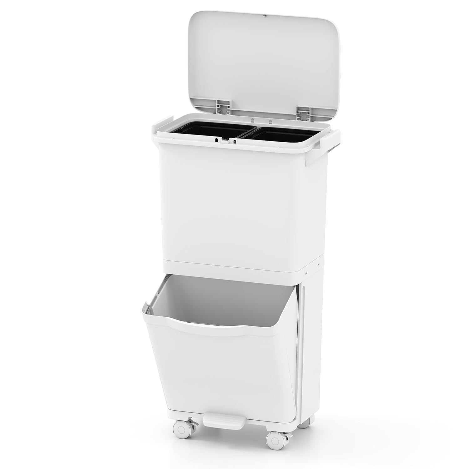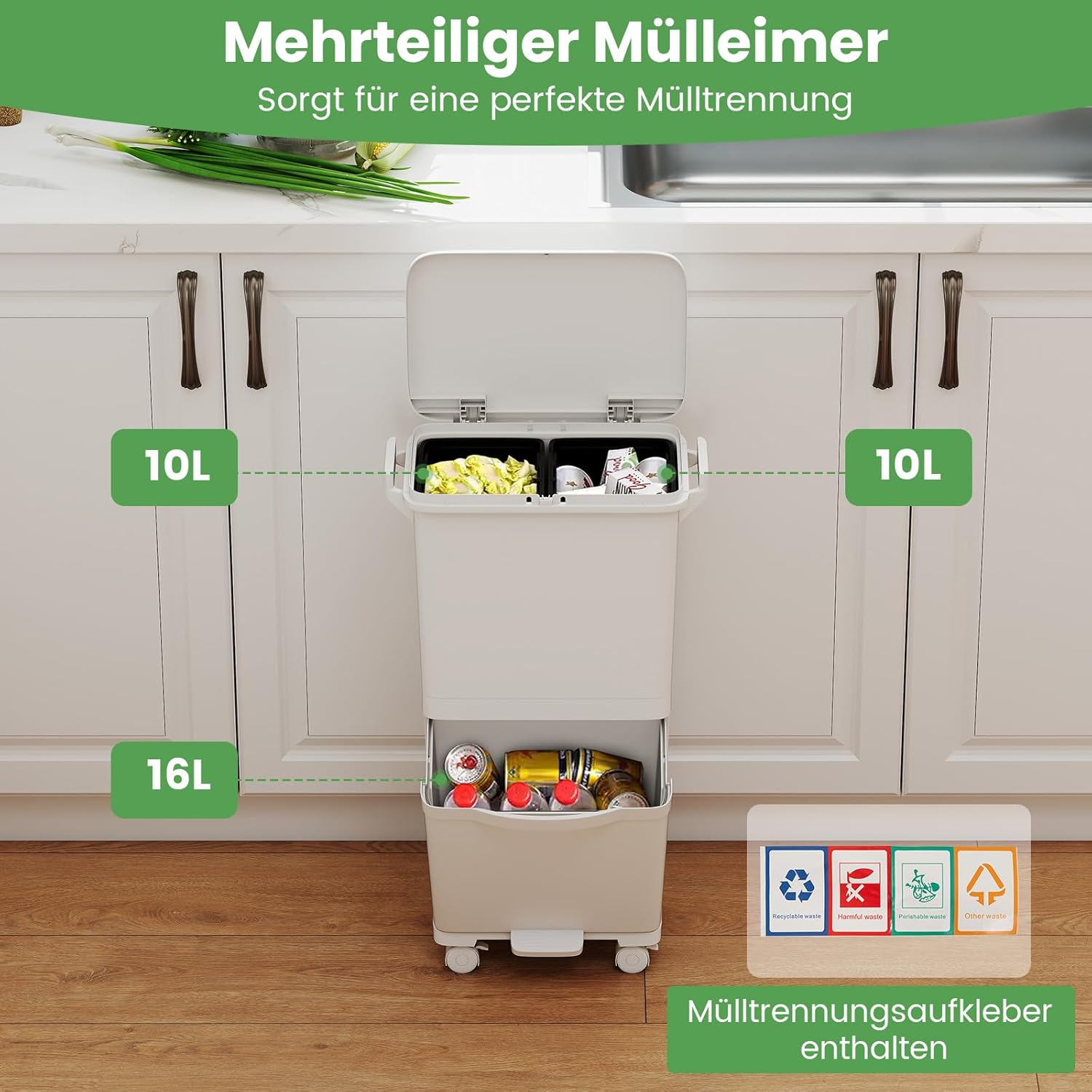 - 【Multifunktionaler Mülleimer】Dieser vielseitige Mülleimer verfügt über einen oberen Behälter mit Trennwand und ein schräg gestaltetes unteres Fach zur Mülltrennung. Die 3 Fächer ermöglichen es, Restmüll, Haushaltsabfälle und recyclebaren