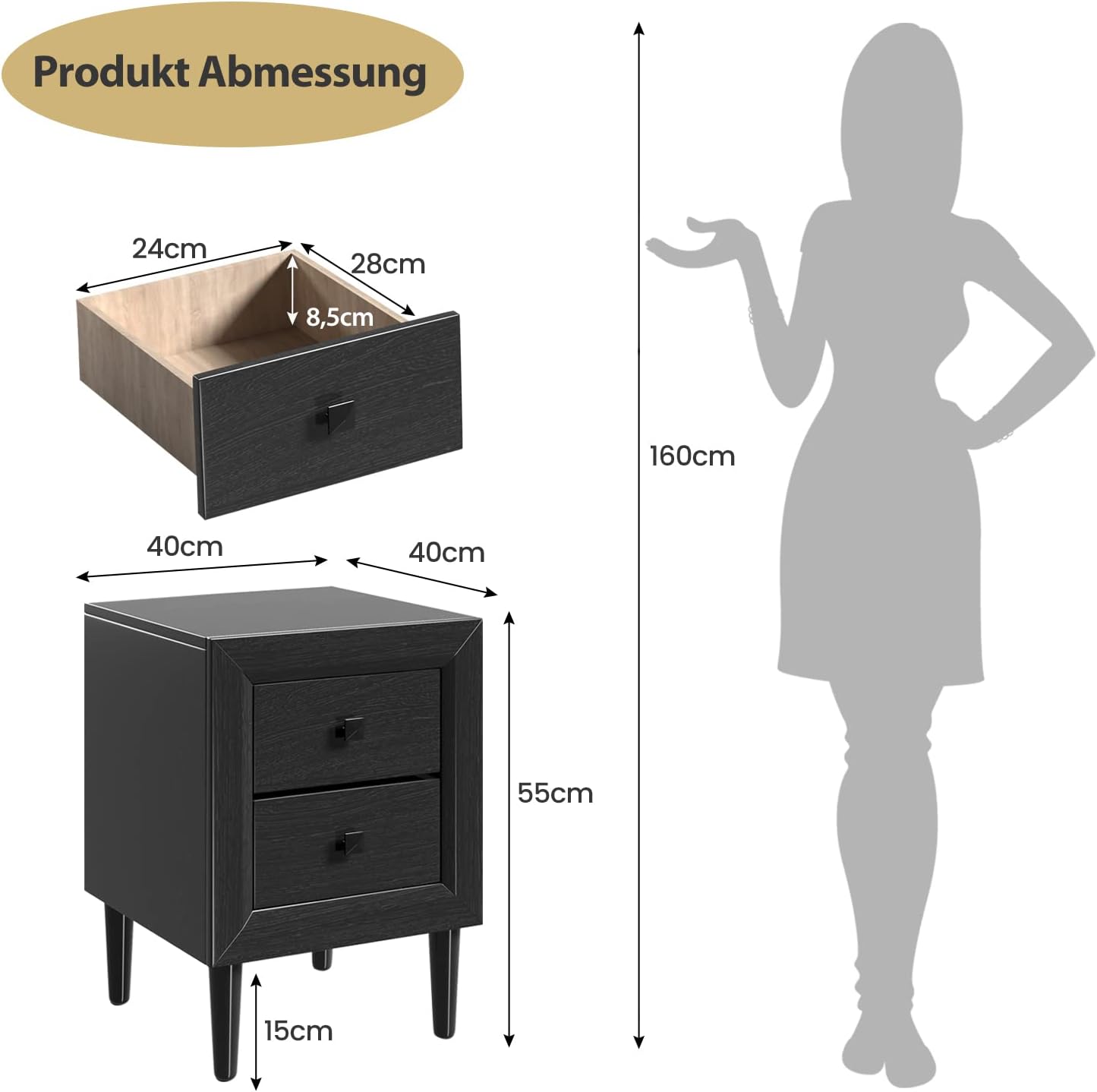 - 【Schnelle Montage】Die Montage des Tisches gelingt sehr einfach. Sie müssen nur die vier Beine sowie die Schubladengriffe montieren, das geht einfach und schnell. Der Nachtkommode misst 39,5 x 39,5 x 55 cm (L x B x H).