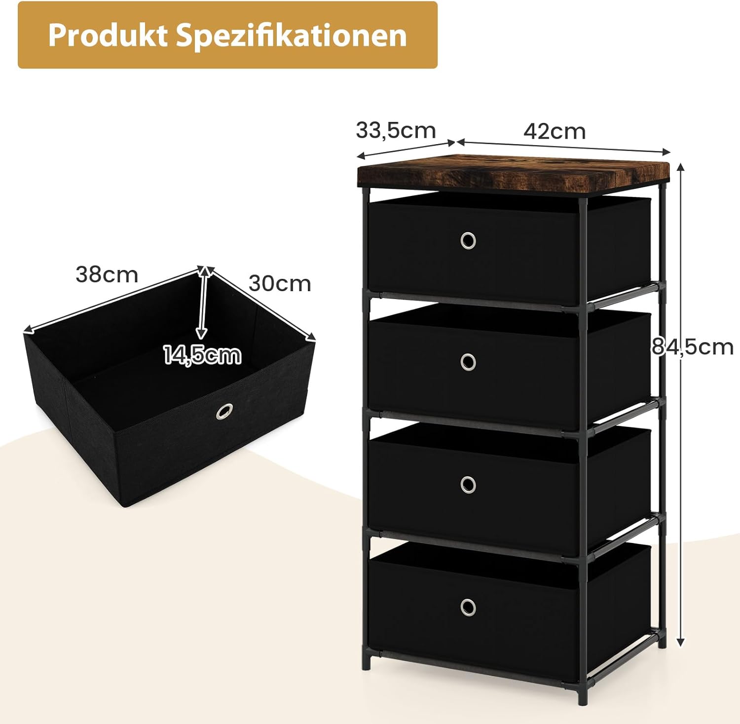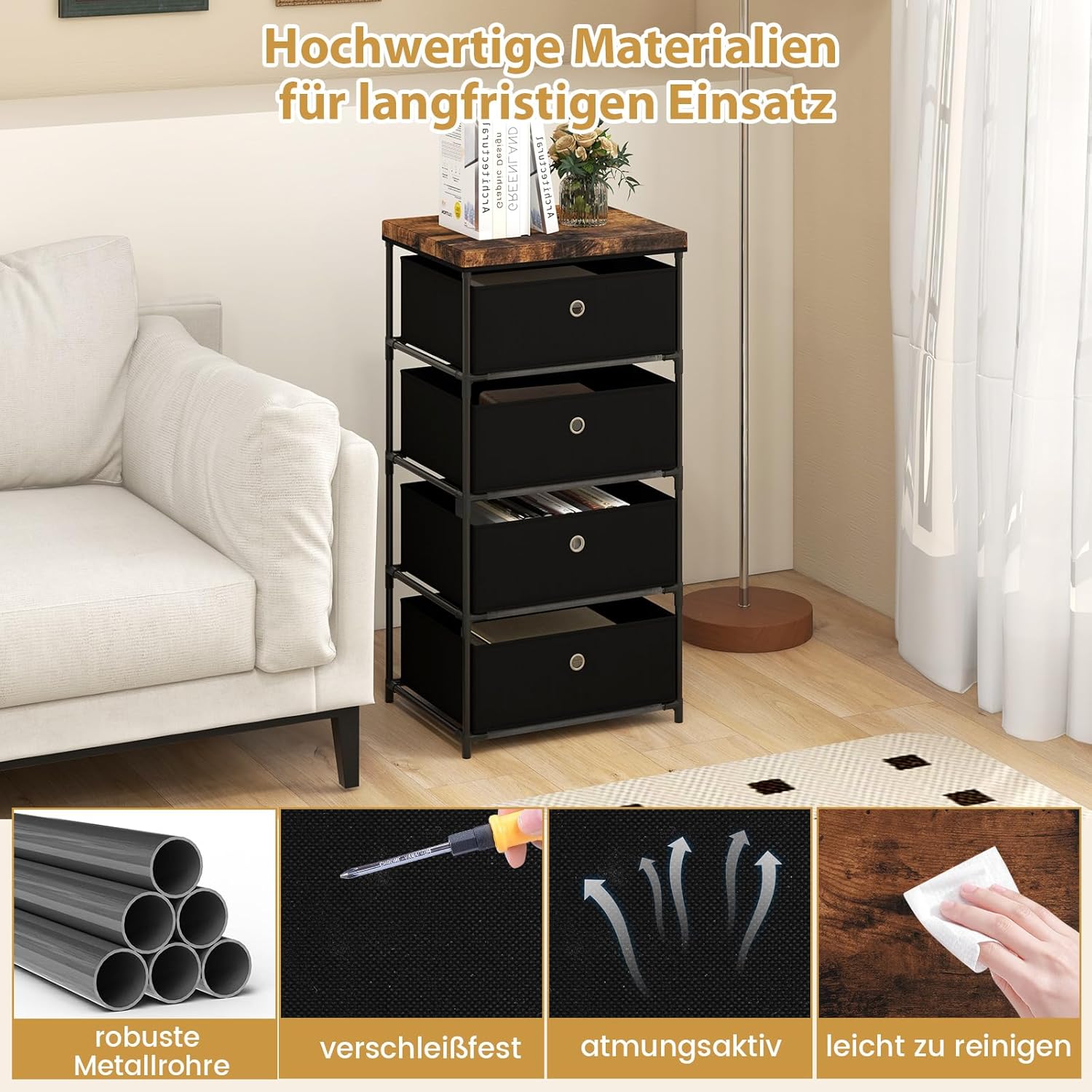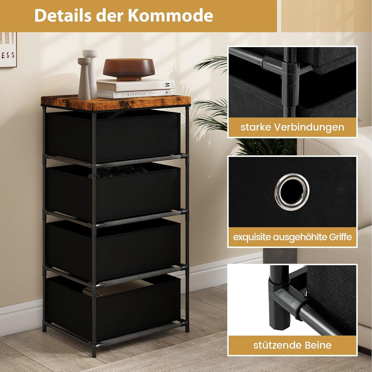- 【Einfach zu installieren】Die Struktur dieser 4-Schubladenkommode ist sehr einfach. Sie müssen nur die Metallstangen mit den PP-Verbindungsstücken kombinieren und schon haben Sie in kürzester Zeit einen perfekten Aufbewahrungsschrank.