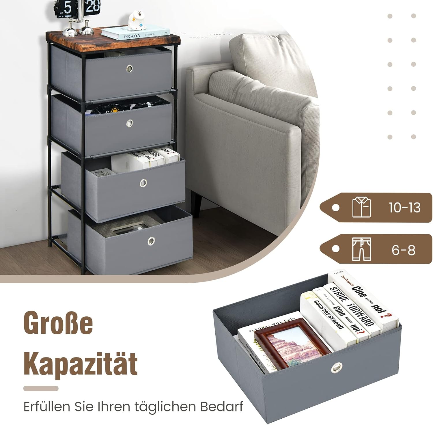 - 【Vielseitig Verwendbar】Die klassische Aufbewahrungskommode passt leicht zu jedem Einrichtungsstil. Sie können sie neben Ihr Bett als hohen Nachttisch oder in einem Schrank als zusätzlichen Stauraum stellen.