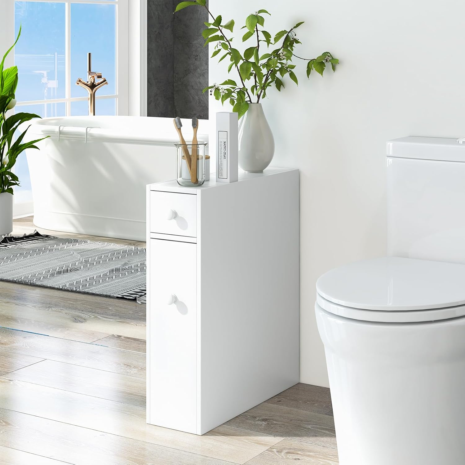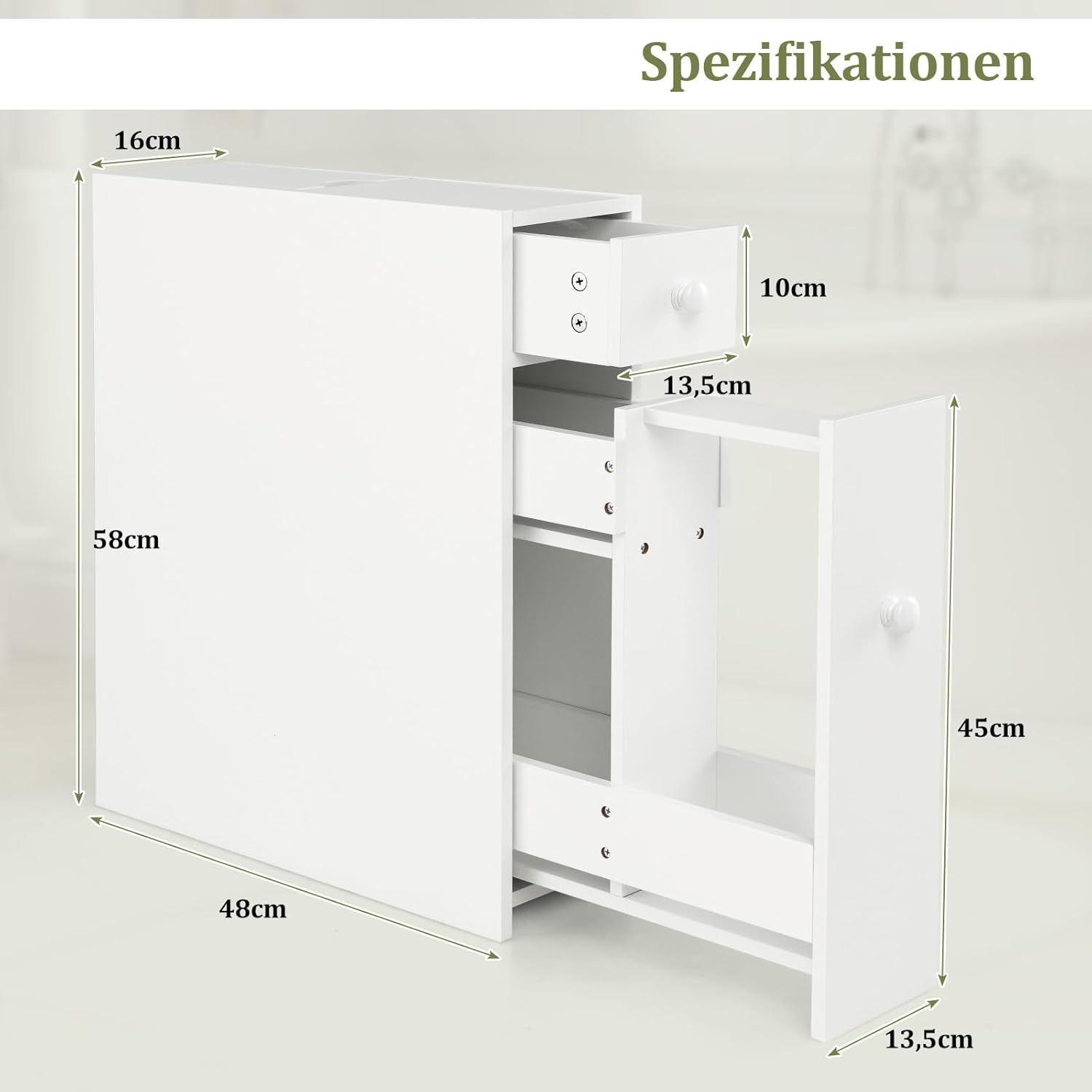 - 【Diverse Aufbewahrungsmöglichkeiten】Mit verschiedenen Schubladen und Schränken können Sie Ihre Taschentücher, Shampoos, Cremes und Handtücher überraschenderweise nach Belieben platzieren. Mit dem leichten ausziehbaren Schubladen können Sie den