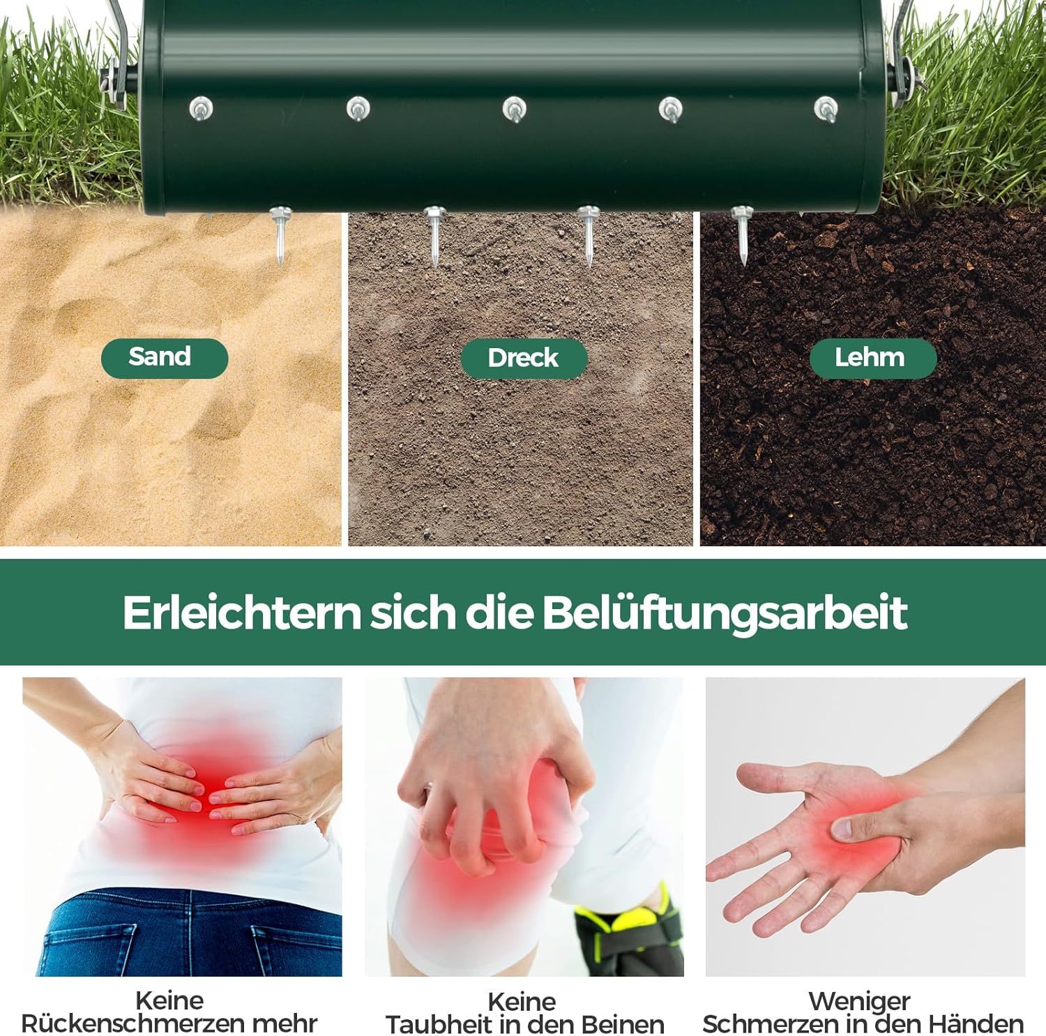 - 【Geeignet für verschiedene Szenen】 Da der Spike-Rasenlüfter eine wichtige Rolle bei der Förderung des Graswachstums spielt, kann er in grossem Umfang in Gärten, Höfen und auf Ackerflächen eingesetzt werden. Darüber hinaus eignet sich der