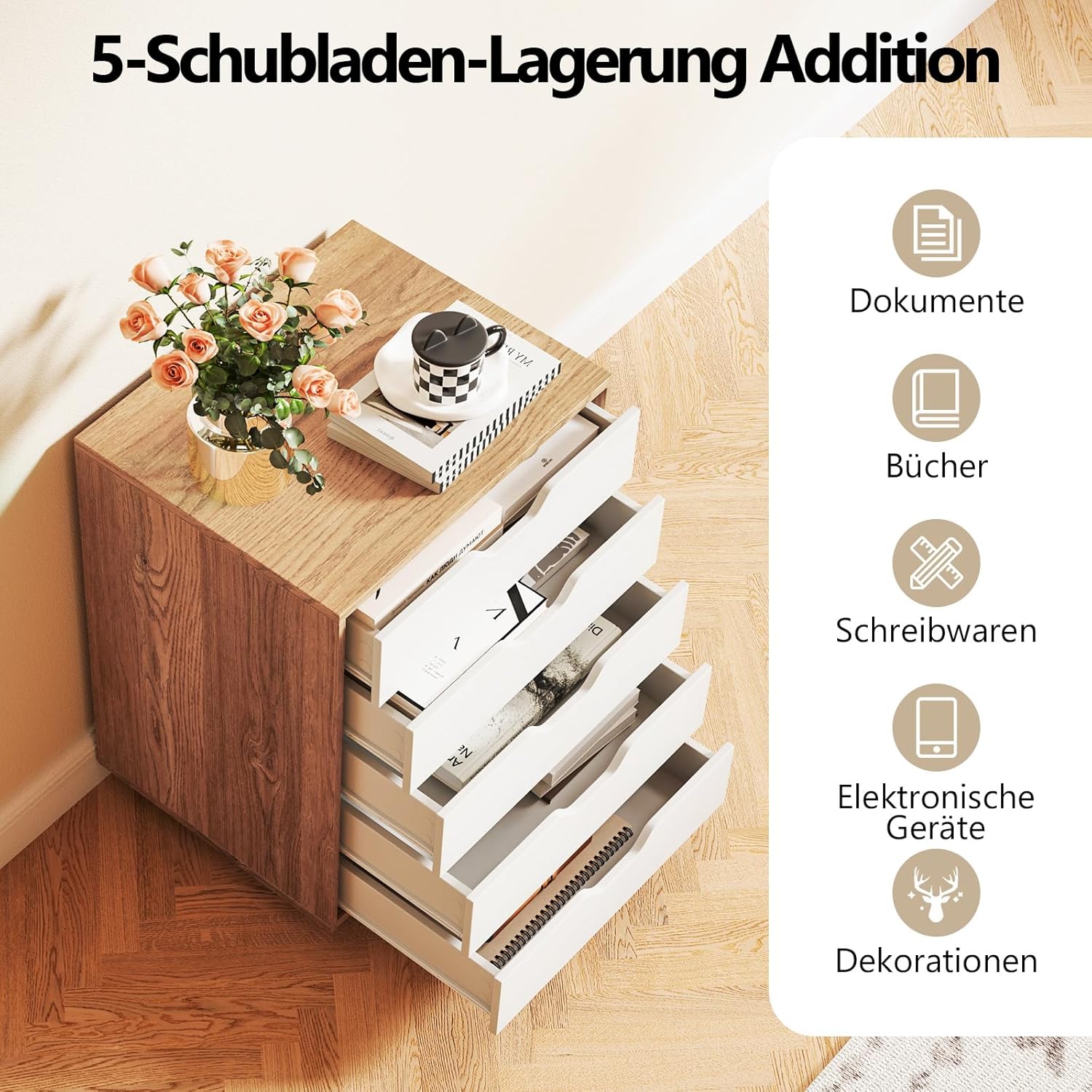 - 【Grosser Stauraum】Die Innenmasse der 5 grossen Schubladen betragen 40 x 33 cm x 7 cm, wodurch genug Platz für Snacks, Kosmetika, Büroutensilien, etc. ist. Die glatten Metallschienen ermöglichen ein einfaches Öffnen und Schliessen. Die Oberseite