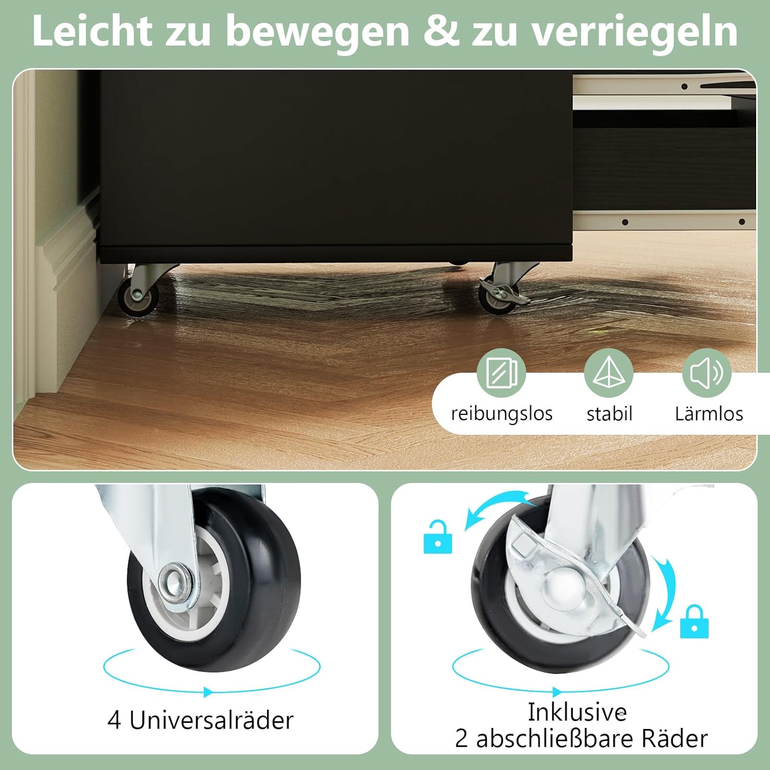 - 【4 praktische Rollen】Durch die vier flexiblen Rollen kann der Schrank überallhin bewegt werden. Zwei von ihnen sind arretierbar, was einen festen Stand ermöglicht. Bei Bedarf können sie jedoch auch abgenommen werden.