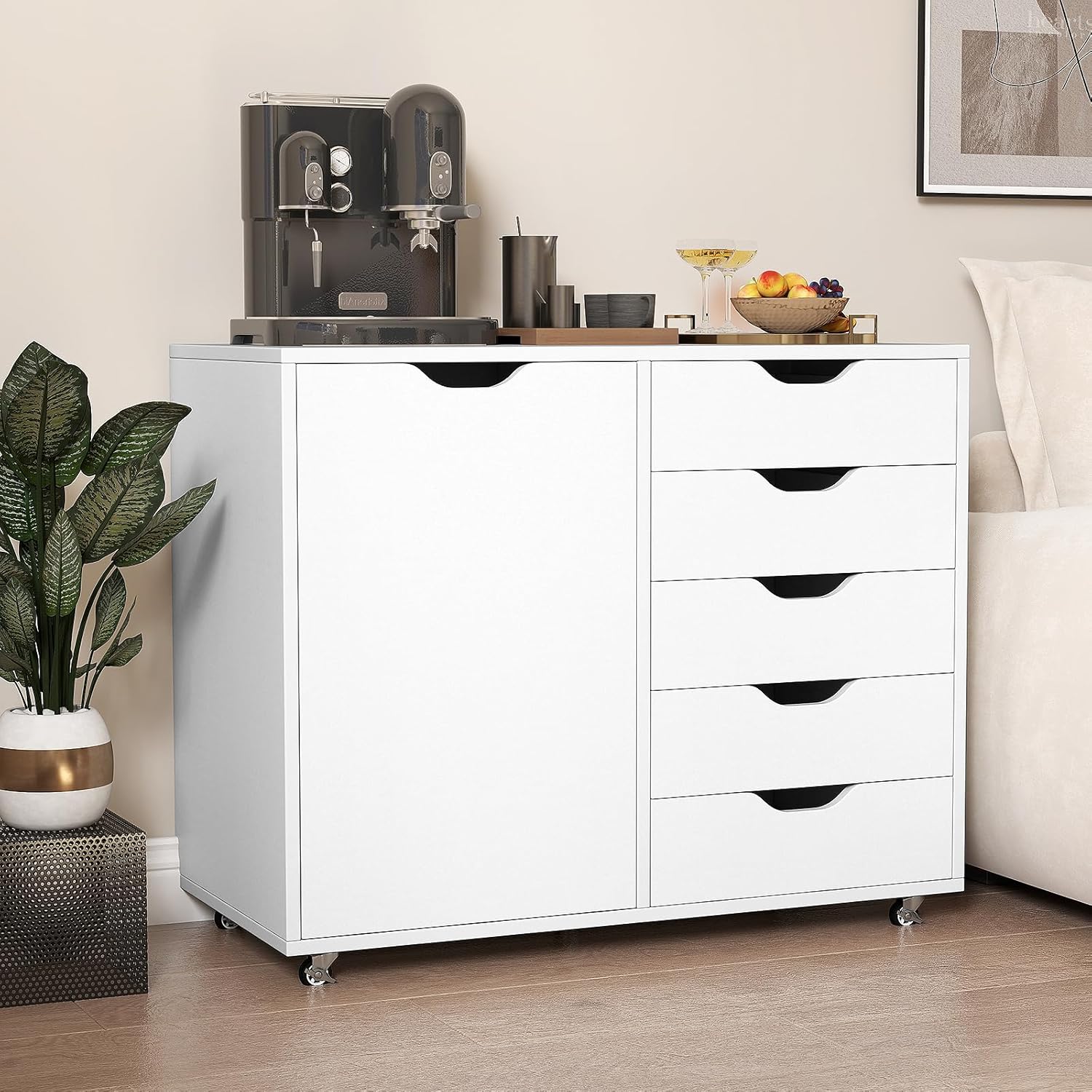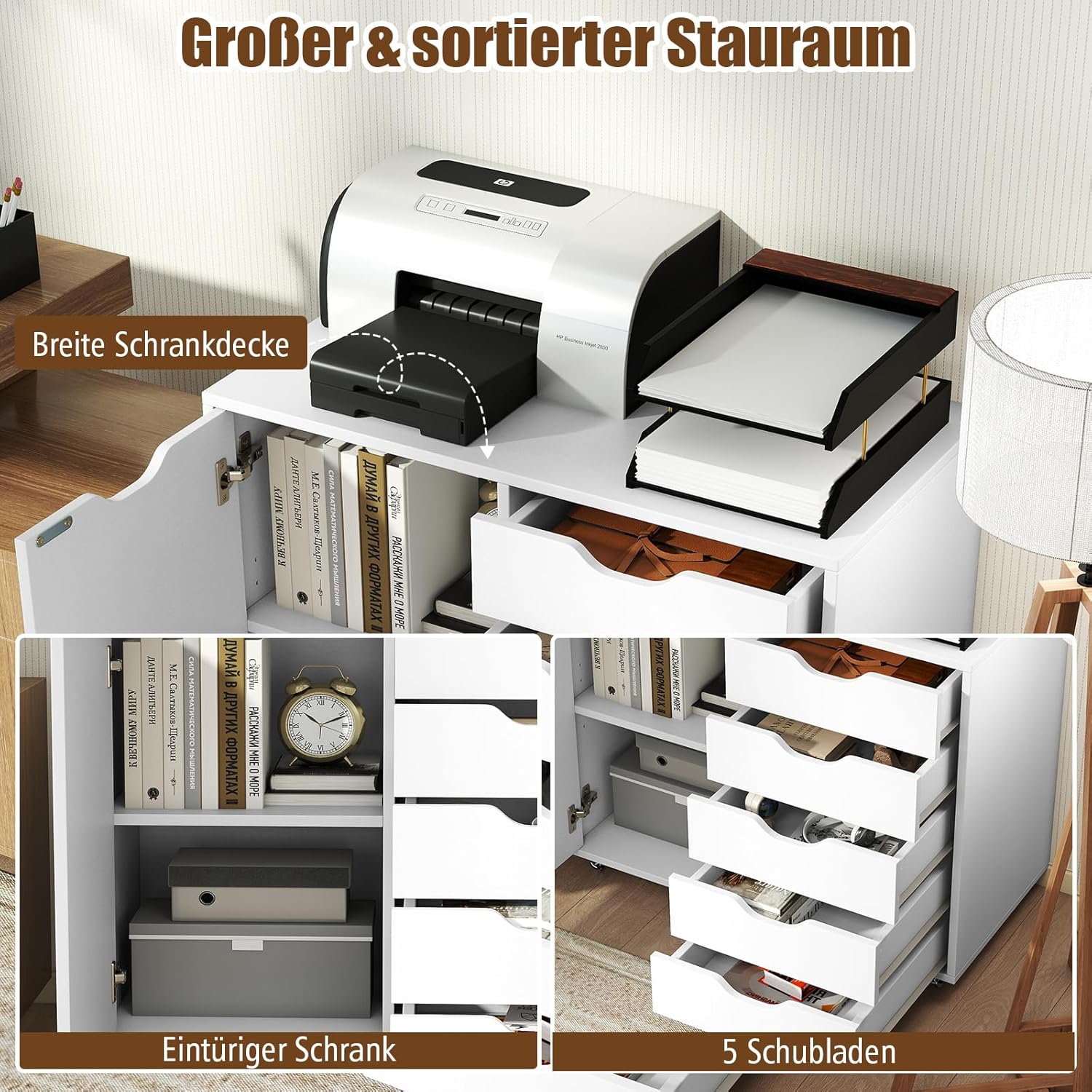 - 【Grosser Stauraum】Die geräumige Arbeitsplatte kann Ihren Drucker oder Scanner aufnehmen. Dieser Aktenschrank mit fünf Schubladen und eintürigem Schrank bieten idealen Stauraum für Stifte, Hefter, Taschenrechner und andere Büromaterialien.