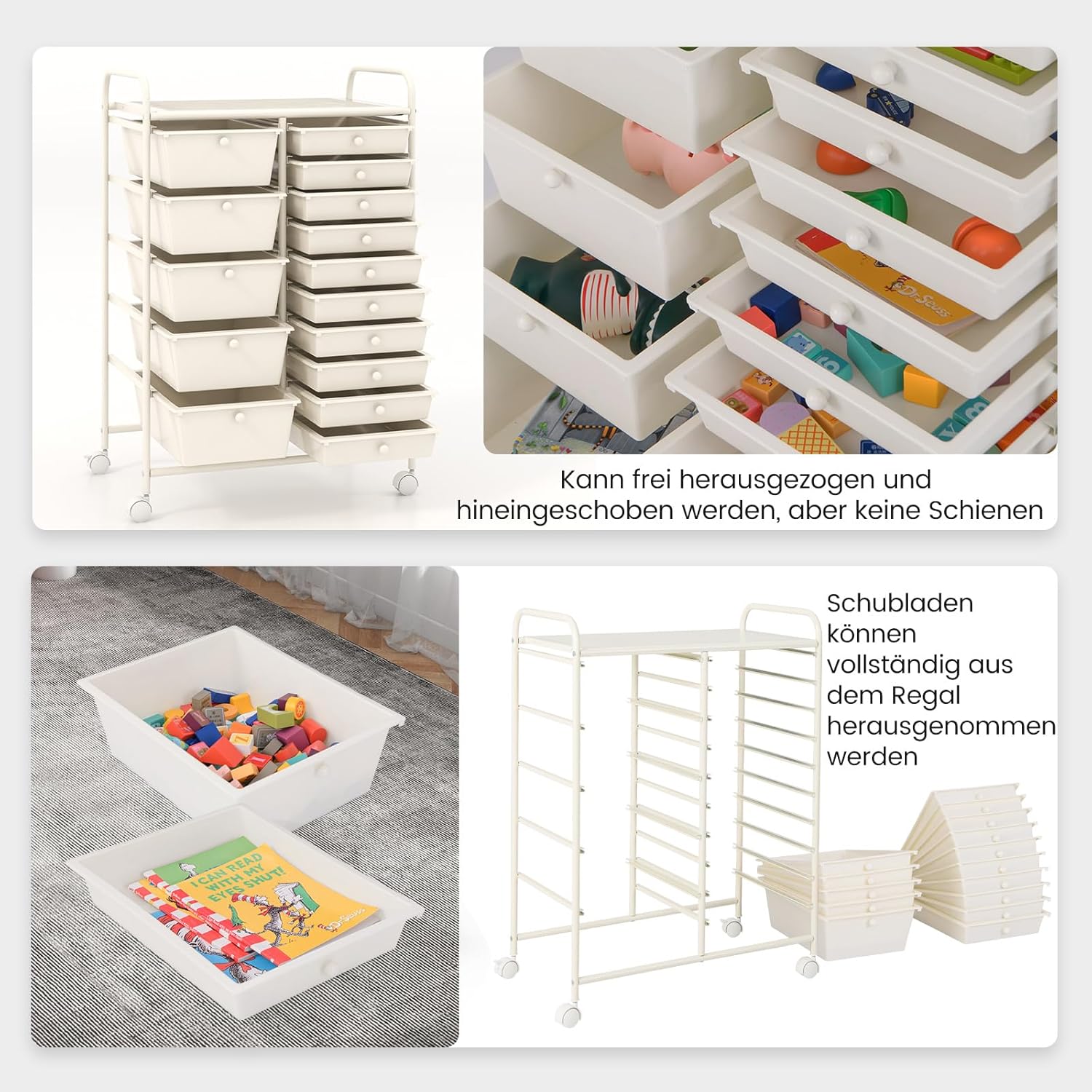 - 【Umfangreiche Verwendbarkeiten】Der Badrollwagen verfügt über 5 grosse Schubladen und 10 kleine Schubladen, ermöglicht er vielseitig im Arbeitszimmer, Büro, Bad oder Kinderzimmer einsetzbar und ist passend für Kosmetikartikel, Bürsten, Kämme,