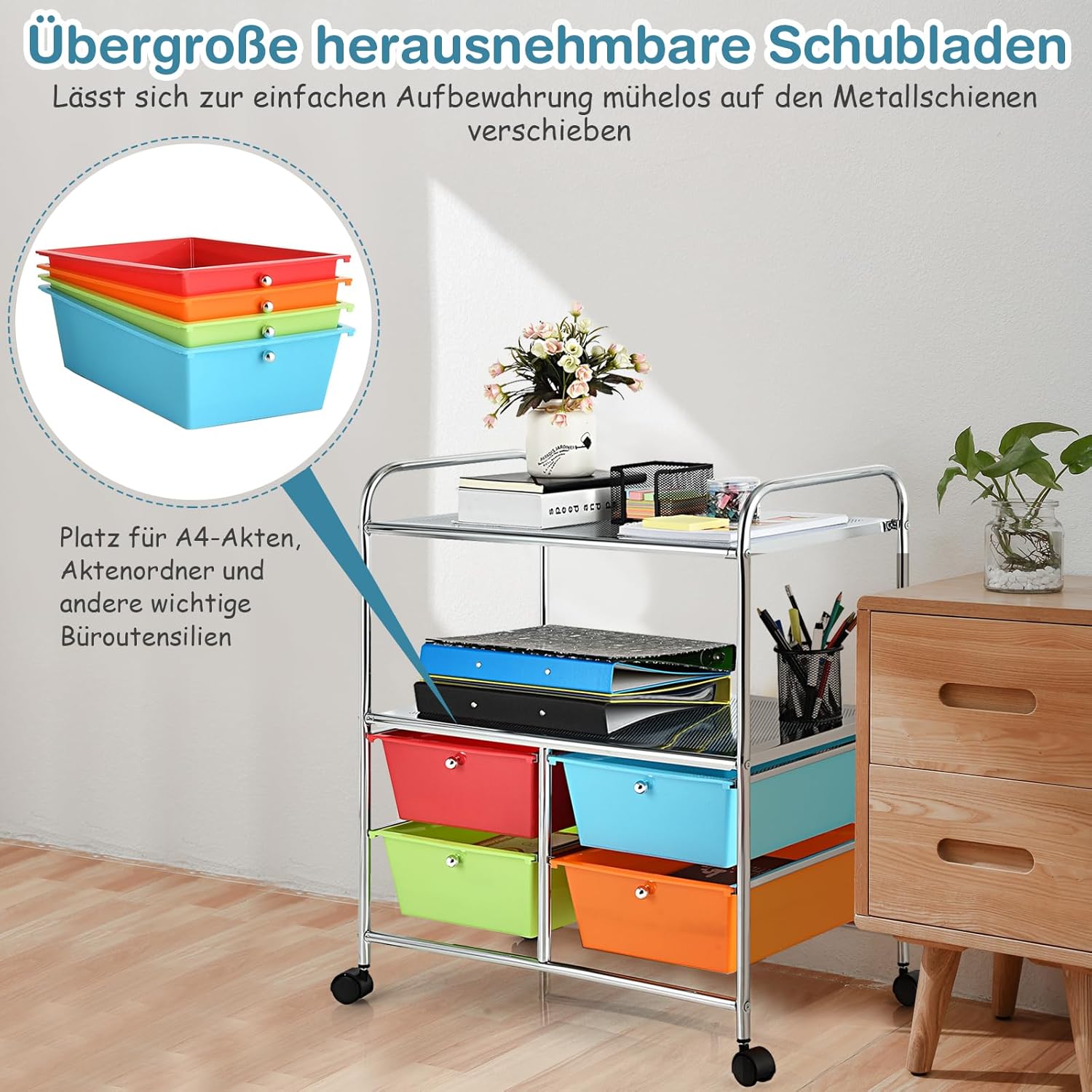 - 【Rausnehmbare Schubladen】Der Mobiler Rollwagen verfügt über 4 separate Schubladen, von denen jede herausgenommen werden kann. Er ist einfach zu bedienen. Zudem erleichtert er auch die Klassifizierung der Artikel.