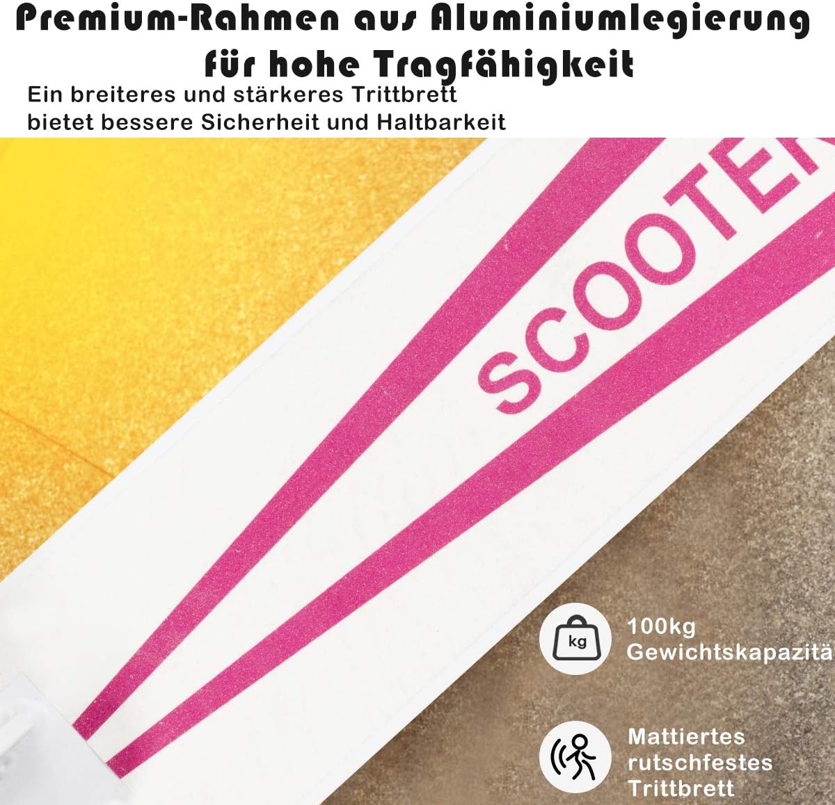 - 【Leichtes Design zum einfachen Tragen】Unser Scooter hat ein äusserst geringes Eigengewicht von nur 3,82 kg und kann gleichzeitig bis zu 100 kg tragen. So eignet er sich ideal für die meisten Mädchen und Jungen und wäre das perfekte Geschenk zum
