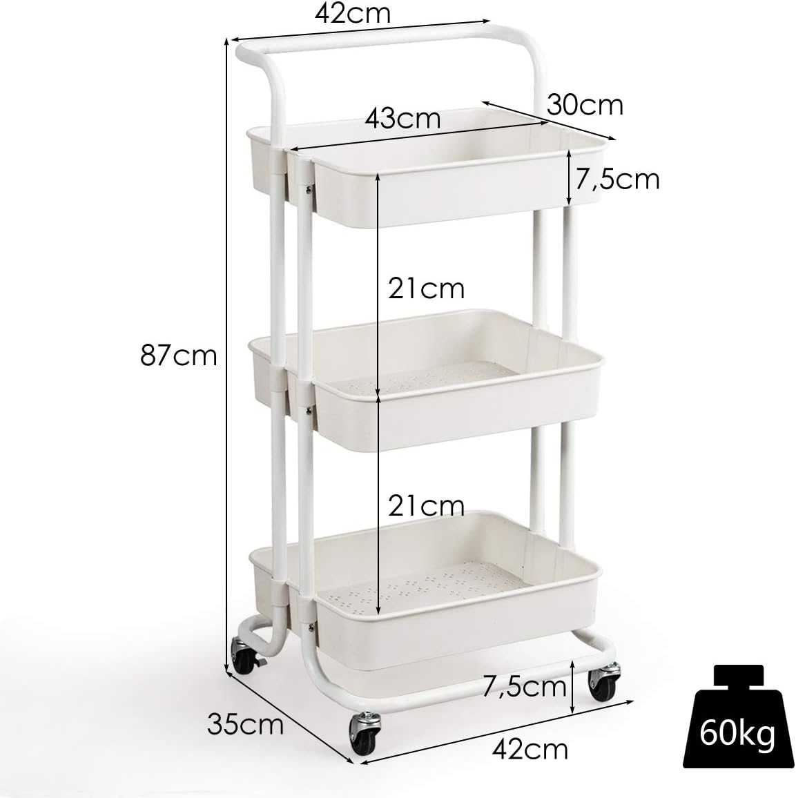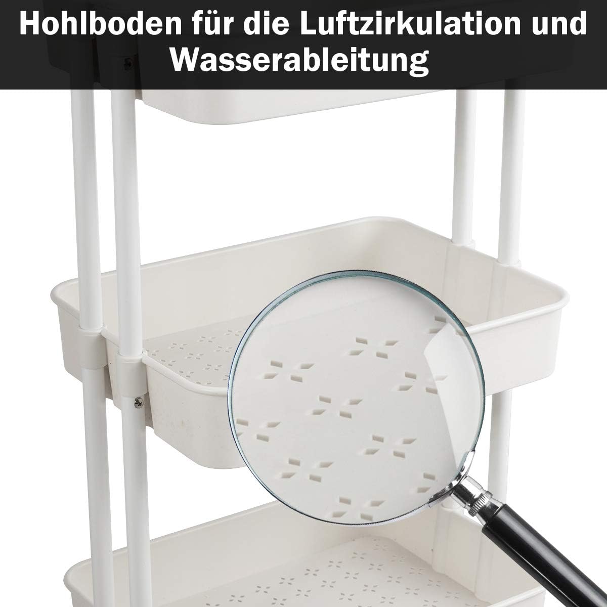 - 【Grosser & praktischer Mehrzweckwagen】Kommt mit 3 Körben und hohen Seitenwänden, sodass alle Gegenstände sicher sind und nicht herunterfallen können. Körbe haben ein kleines Abflussluch, sodass sie besser zu reinigen sind. Der Wagen ist mit bis