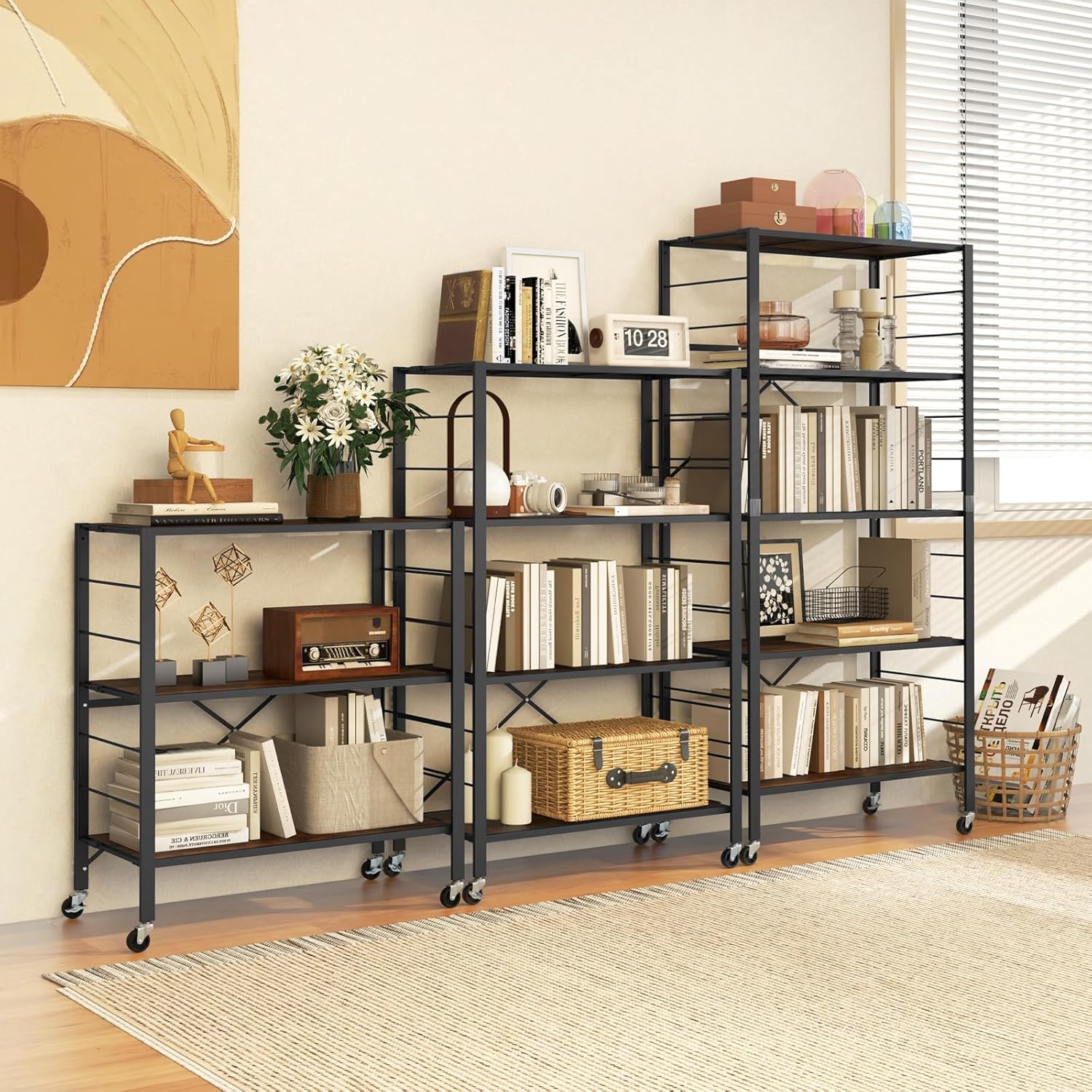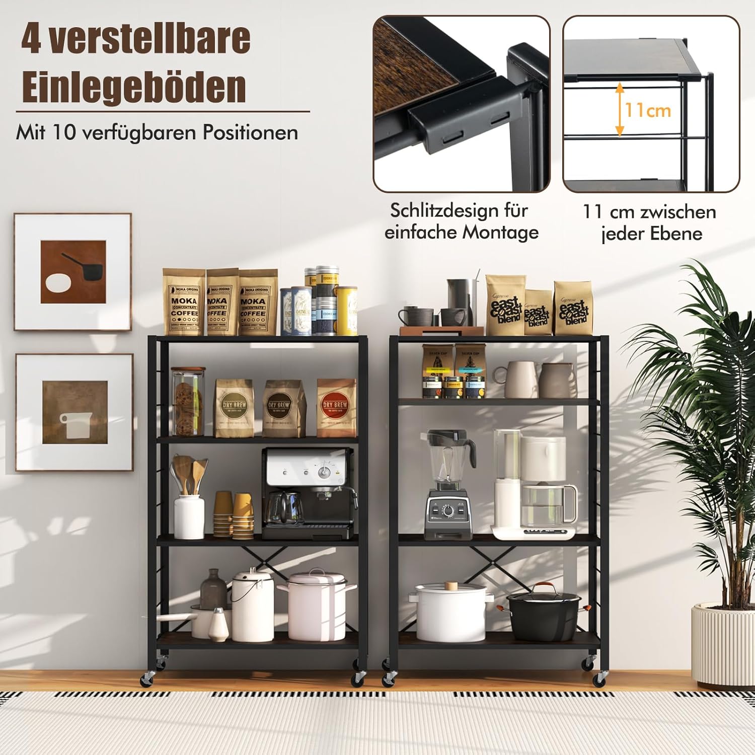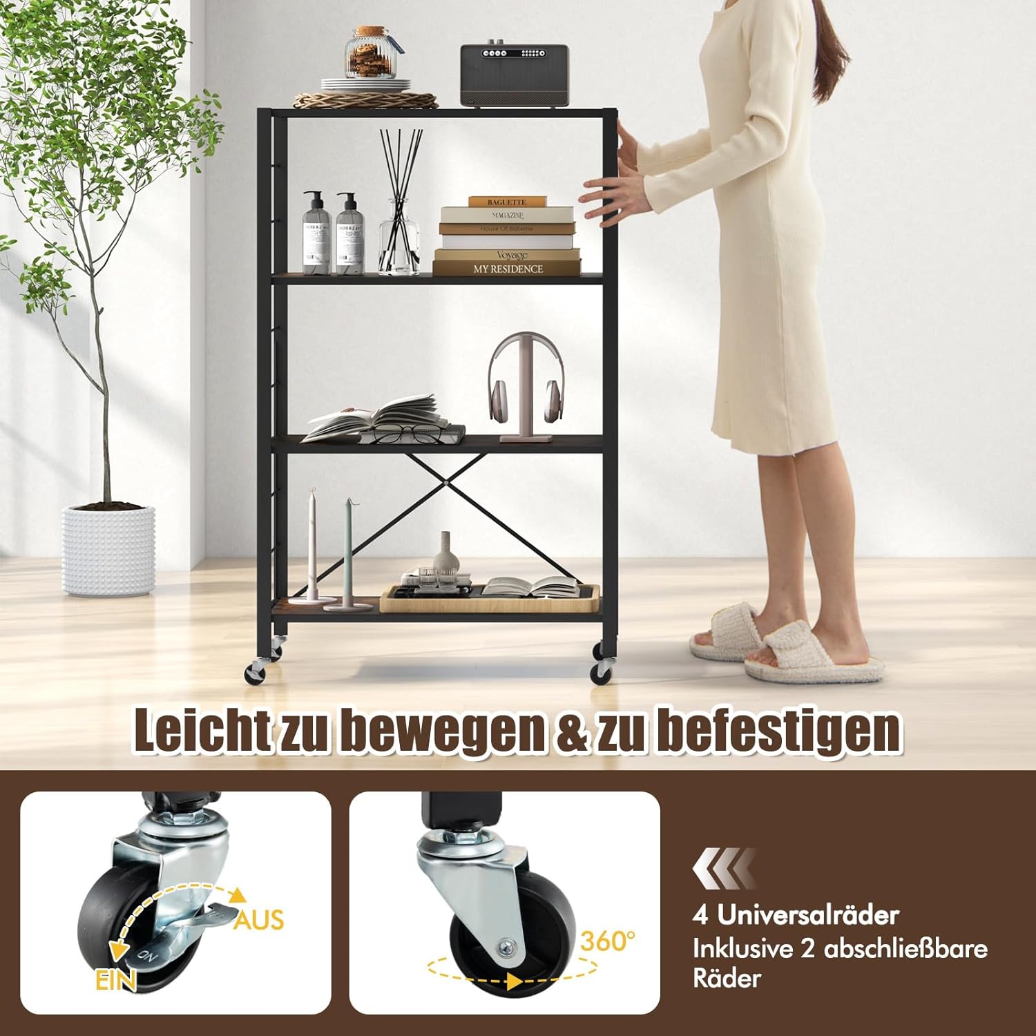 - 【Sichere Räder】 Transportieren Sie dieses vielseitige Regal mühelos mit arretierbaren Universalrädern. Sperren Sie 2 Räder, um unerwünschte Bewegungen zu verhindern, und bieten Sie eine solide und stabile Aufbewahrungslösung. Geniessen Sie die